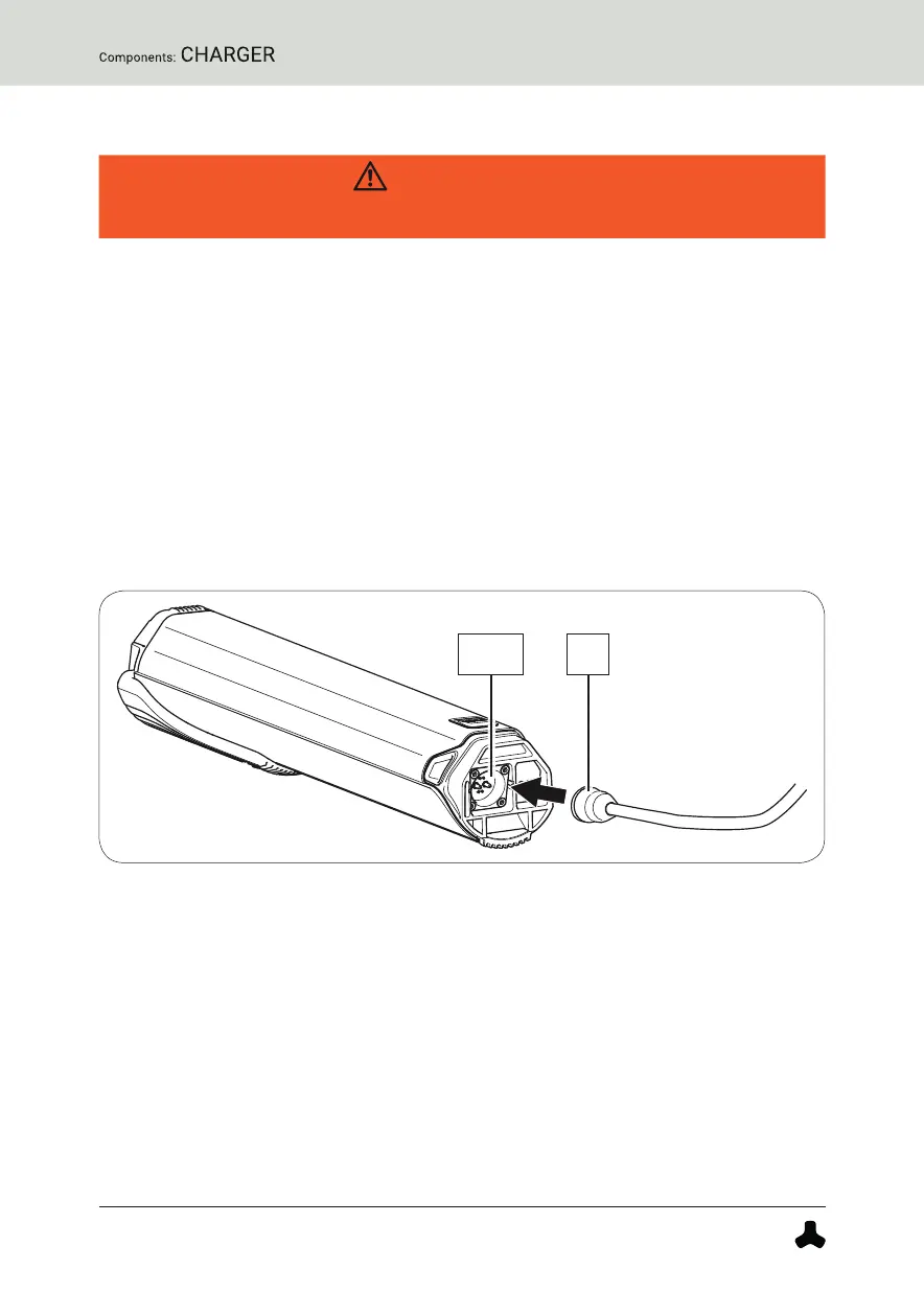 1. Plug the charger's charger plug into the charging socket on the battery.