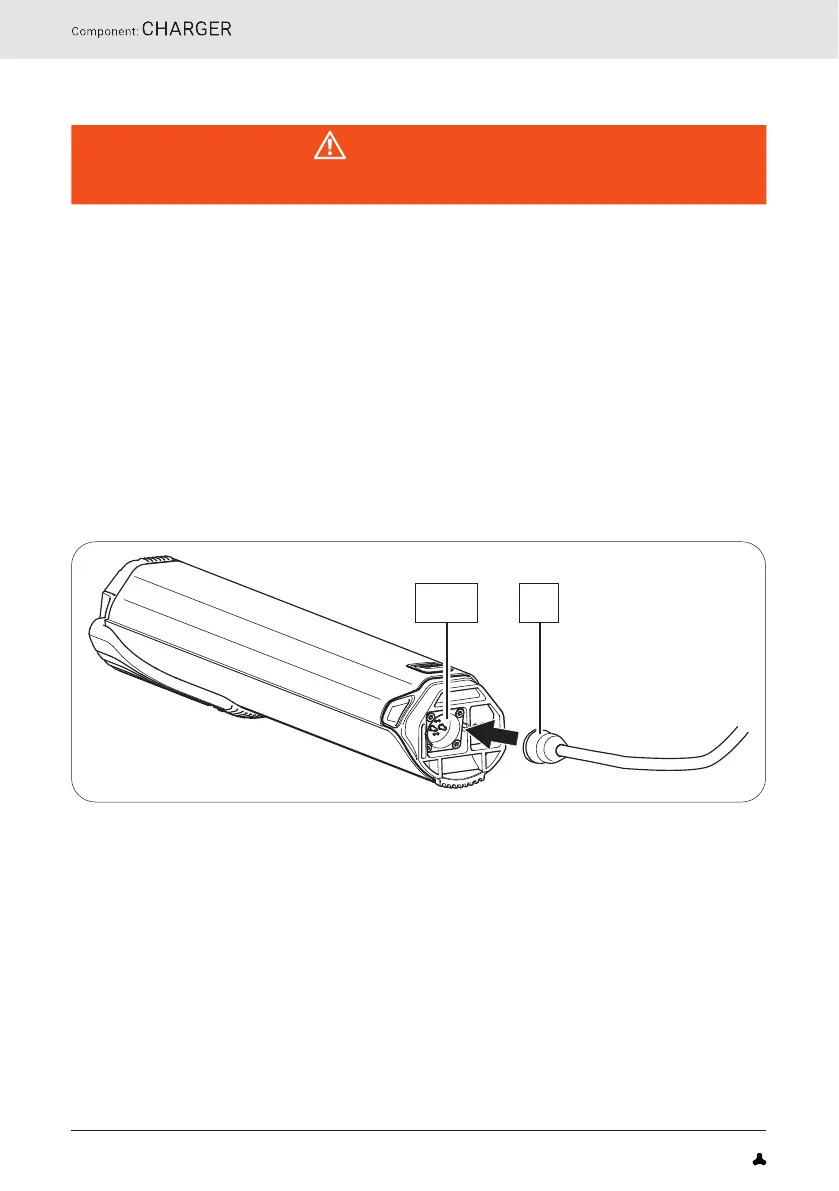 1. Plug the charger plug into the charging socket on the battery.