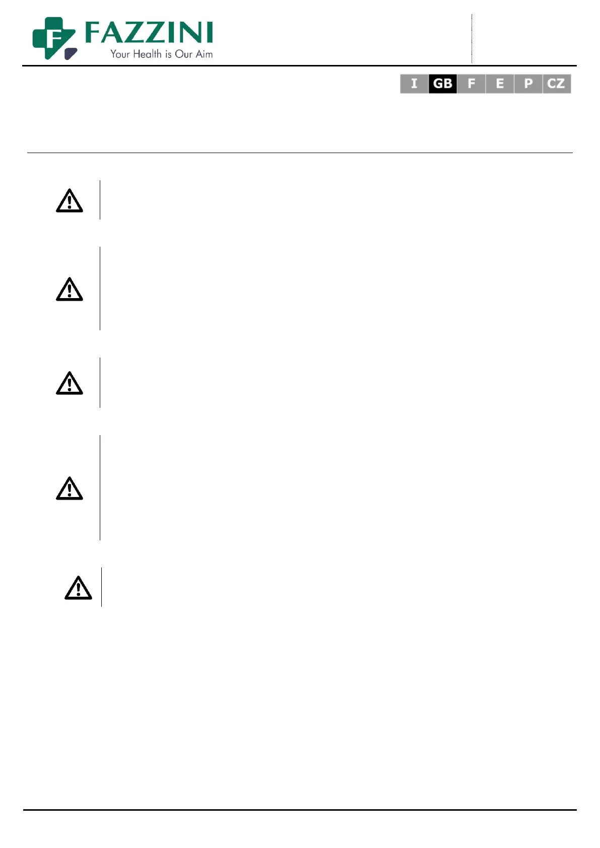 DO NOT DISASSEMBLE THE DEVICE. WHEN REPAIR IS NEEDED, PLEASE CONTACT FAZZINI S.R.L. CUSTOMER SERVICE.