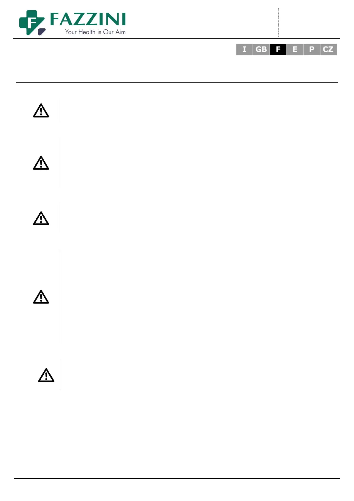 NE PAS OUVRIR L'APPAREIL. POUR TOUTE INTERVENTION CONTACTER LES SERVICES TECHNIQUES DE FAZZINI S.R.L.