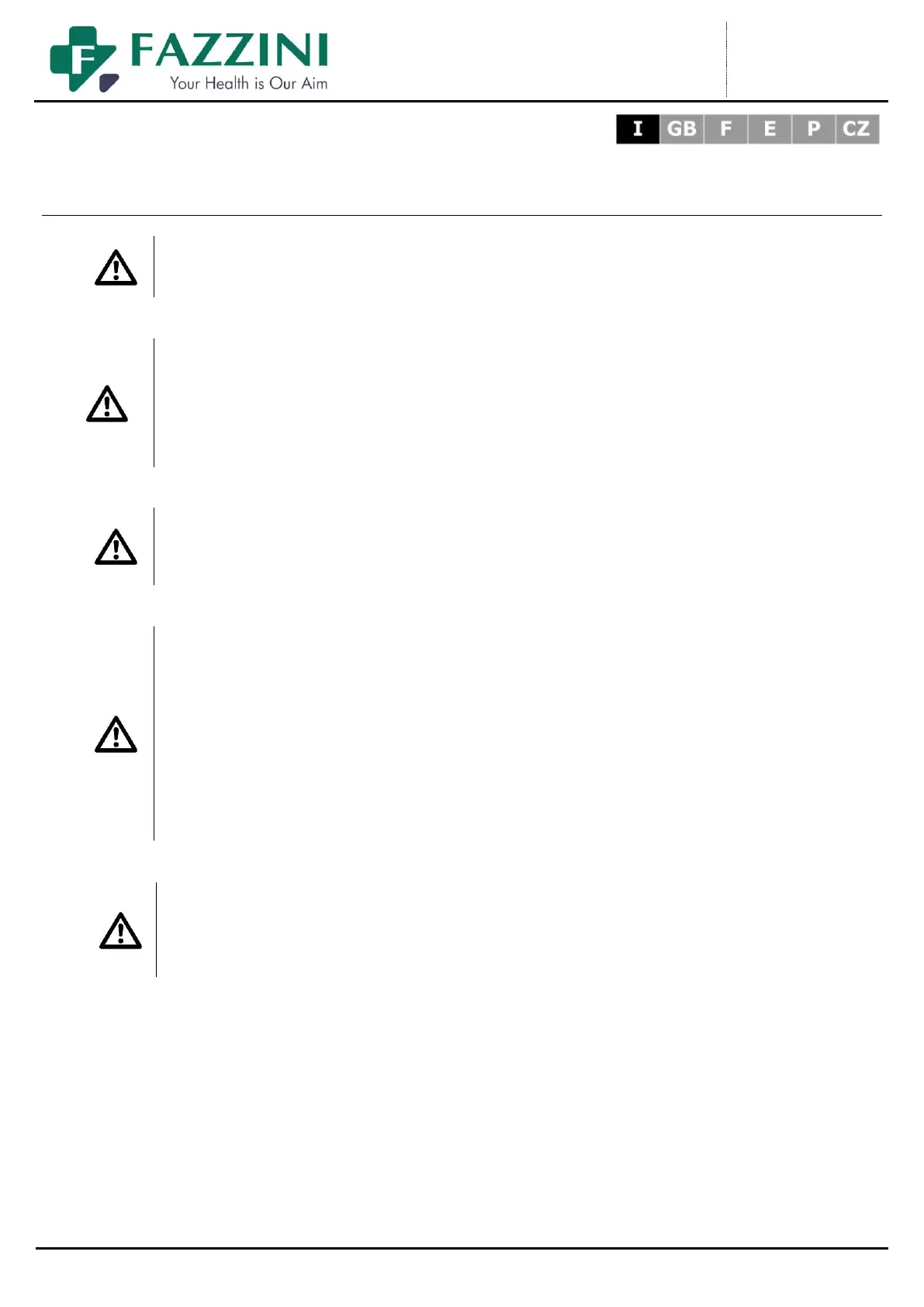 NON APRIRE L’APPARECCHIO. PER QUALSIASI INTERVENTO CONTATTARE IL SERVIZIO TECNICO DELLA FAZZINI S.R.L.