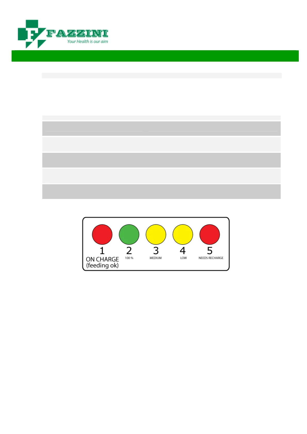 LIGHT INDICATOR DESCRIPTION OF THE BATTERY LEVEL