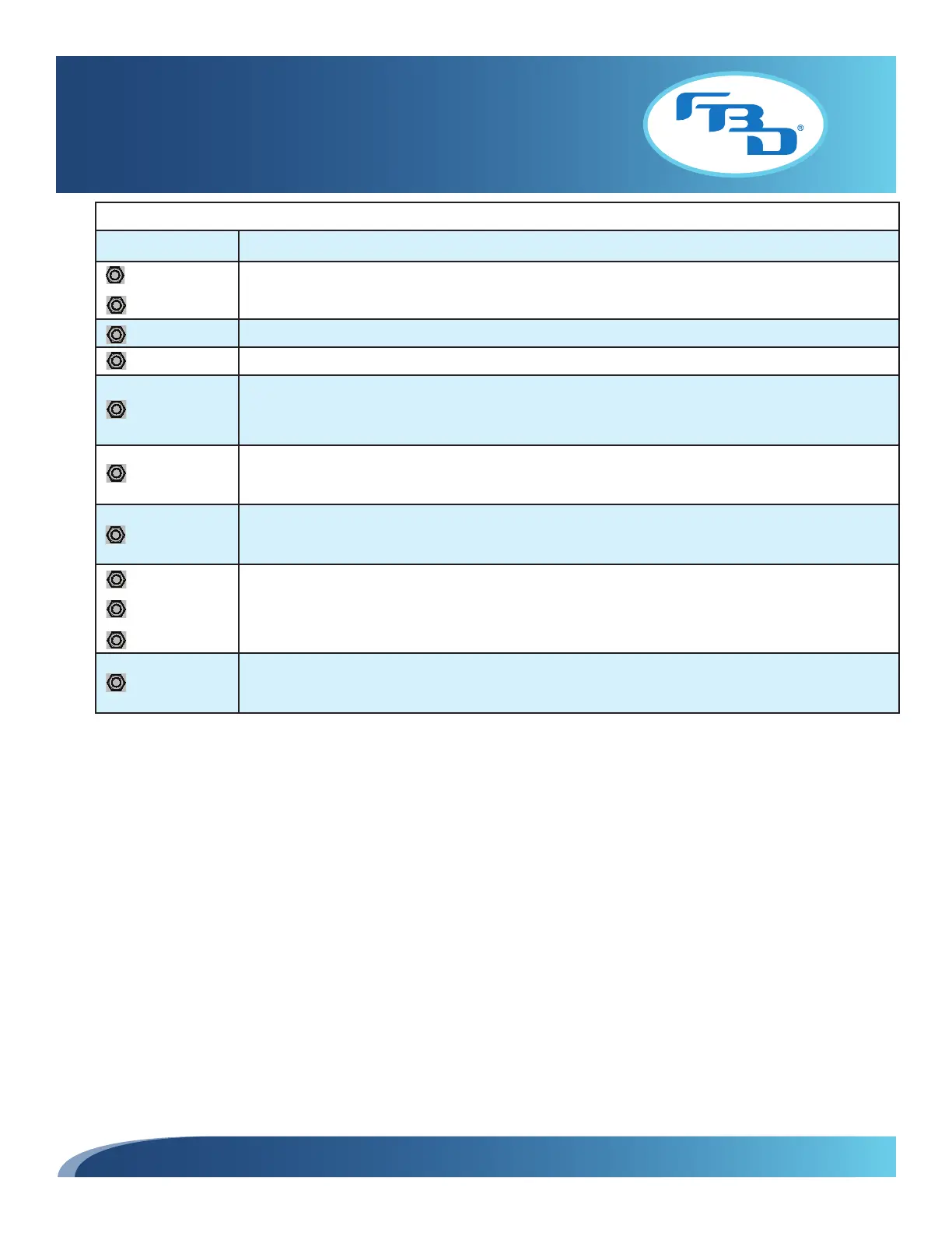 *Contact FBD Engineering Department for digital artwork files of layout with color specifications.