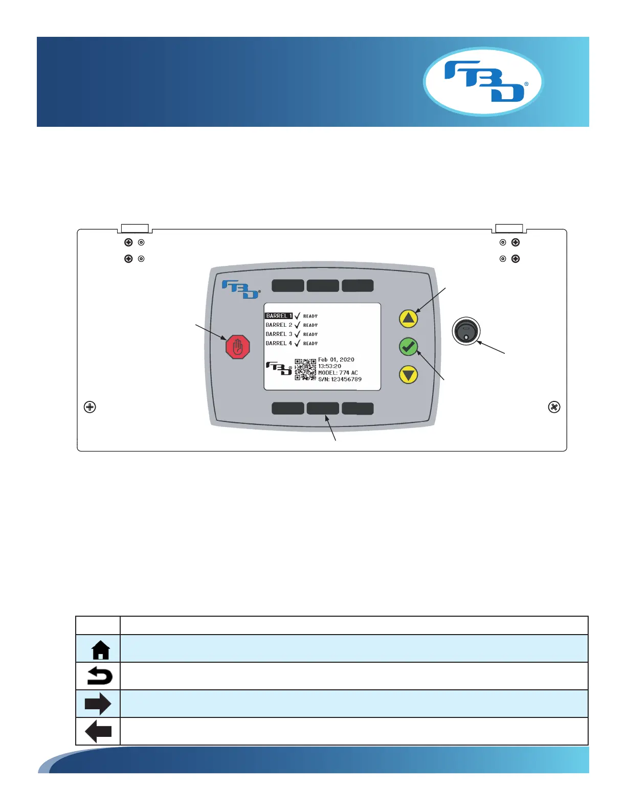 • Stop All Button (red): This button will turn off all barrels. A confirmation by the green select button is required.