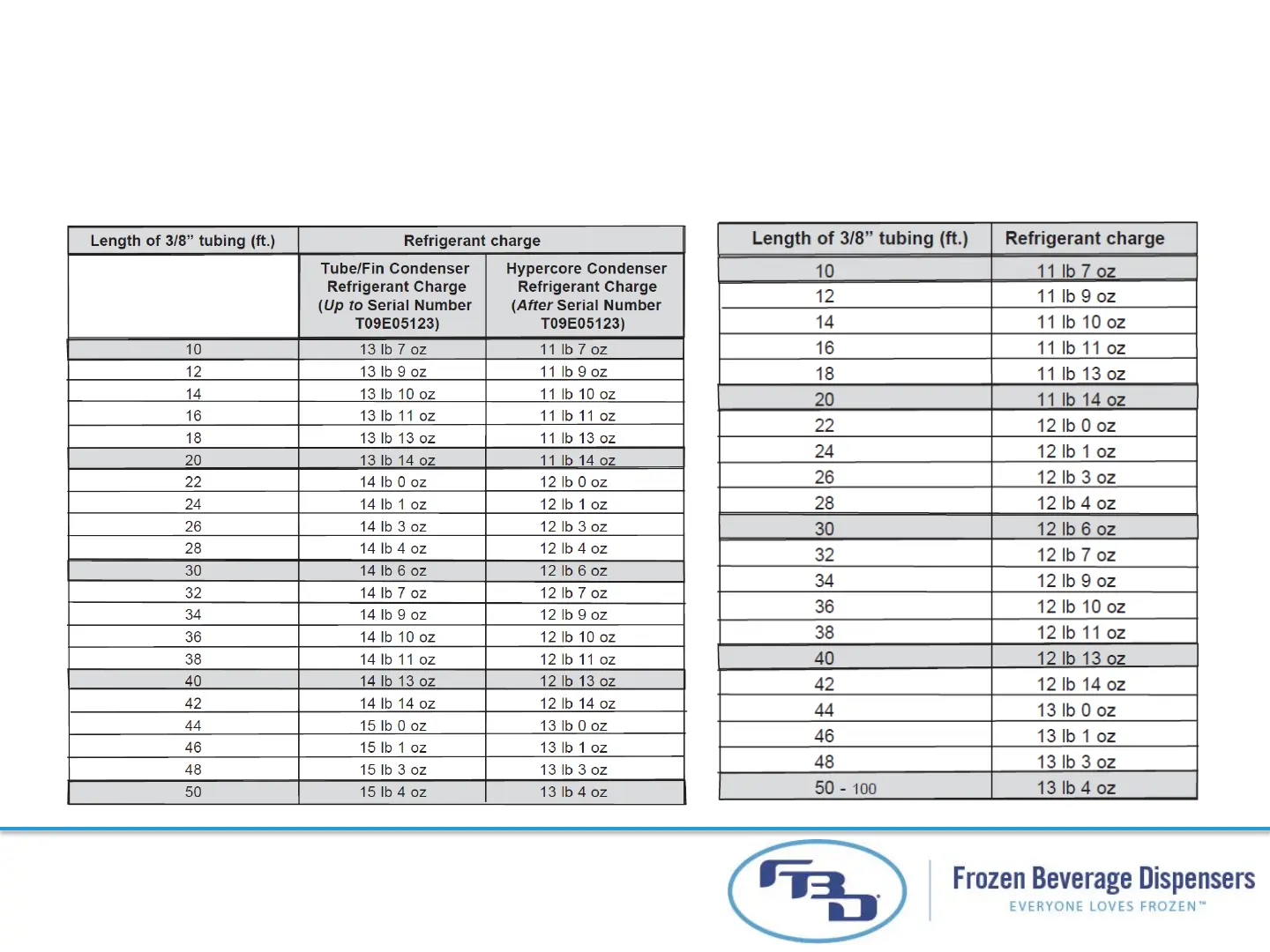 FBD 56 Series - Remote Refrigerant Charge Matrix