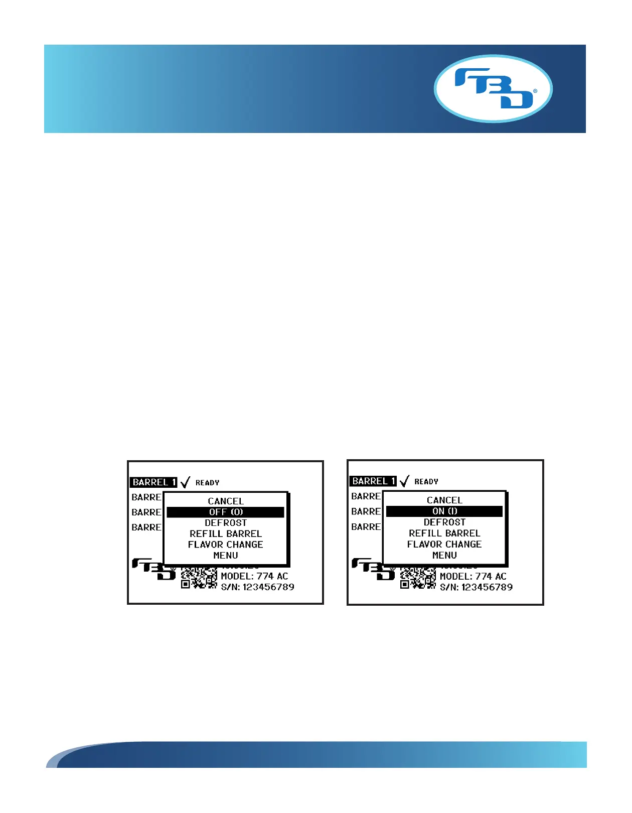 submenus. Press the green button while a barrel is highlighted to perform actions to that barrel such as defrost or turn on/