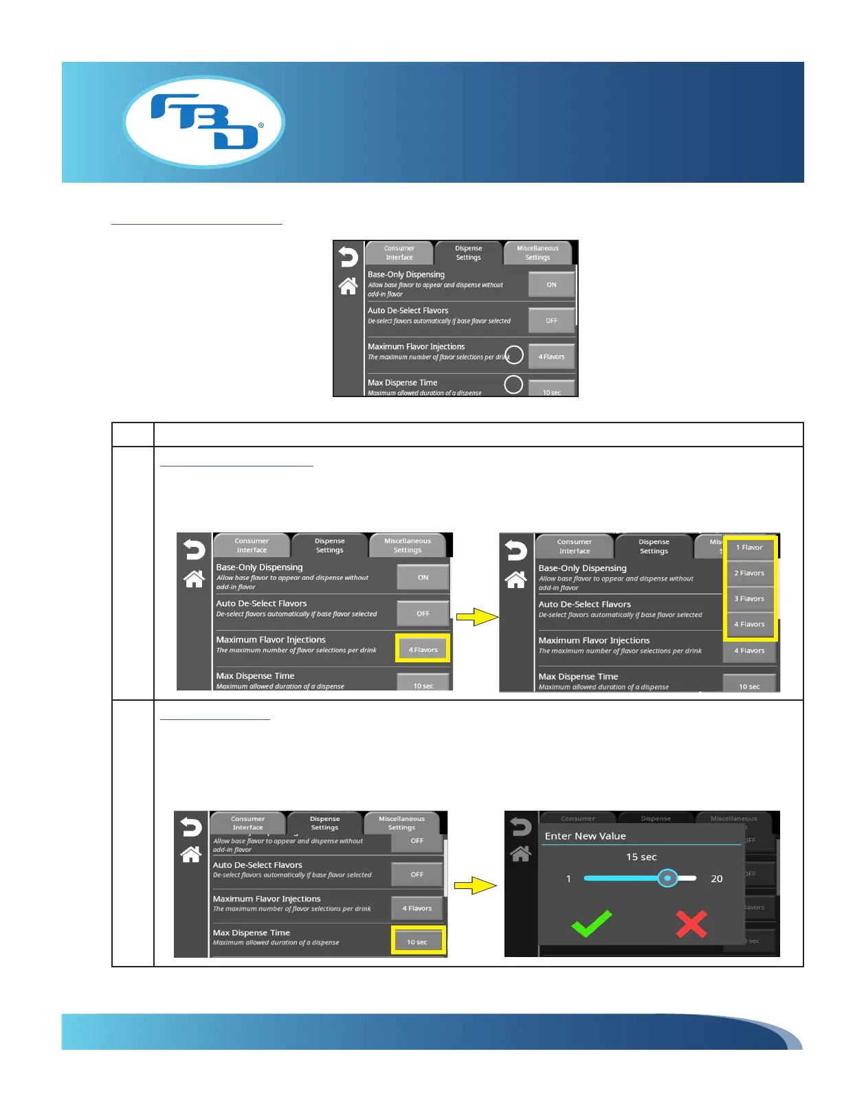 3 Maximum Flavor Injections: Sets the amount of flavor add-ins that can be dispensed with the base flavor. Select