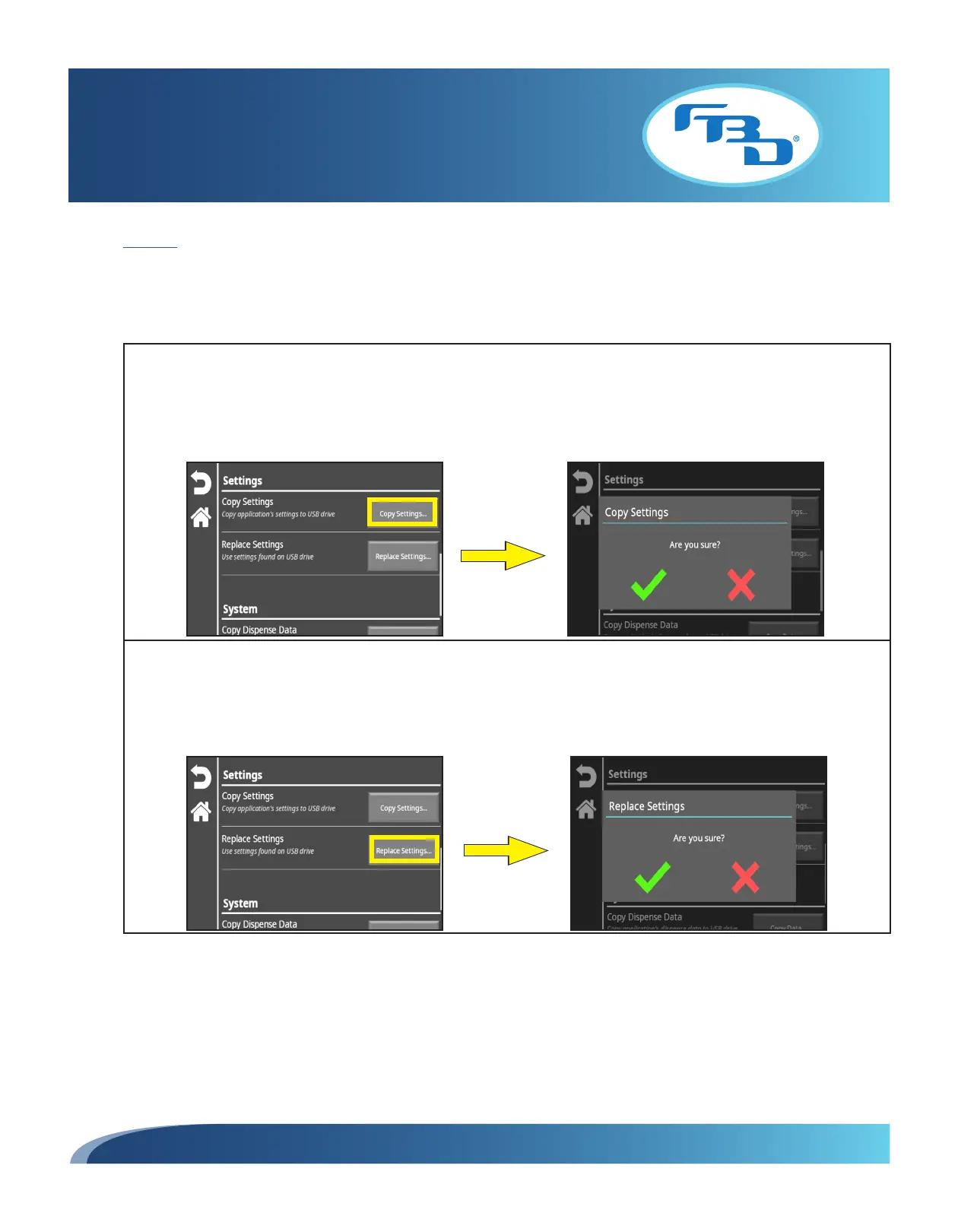 to Section 6.2). Once this option is selected, a pop-up window will appear asking if you want to replace existing settings.