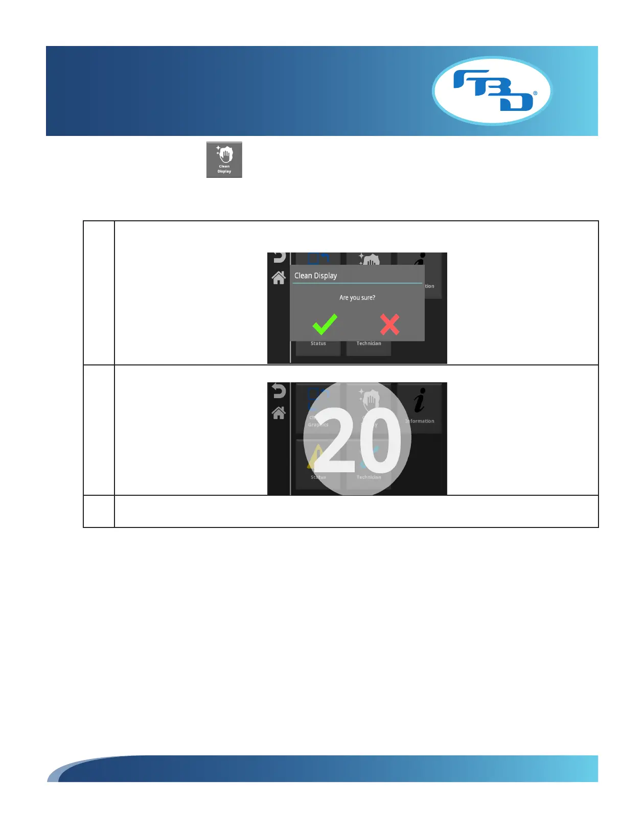 2 A 20 second timer will appear. The screen will be unresponsive to touch during the timer countdown.