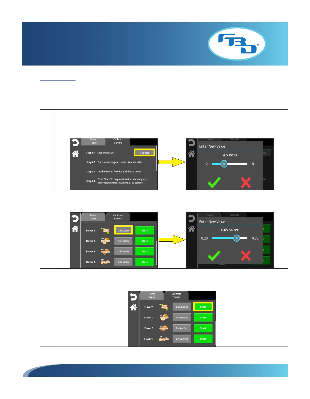 the flavor being calibrated. On the pop-up window, move the slider to the desired value and press the green