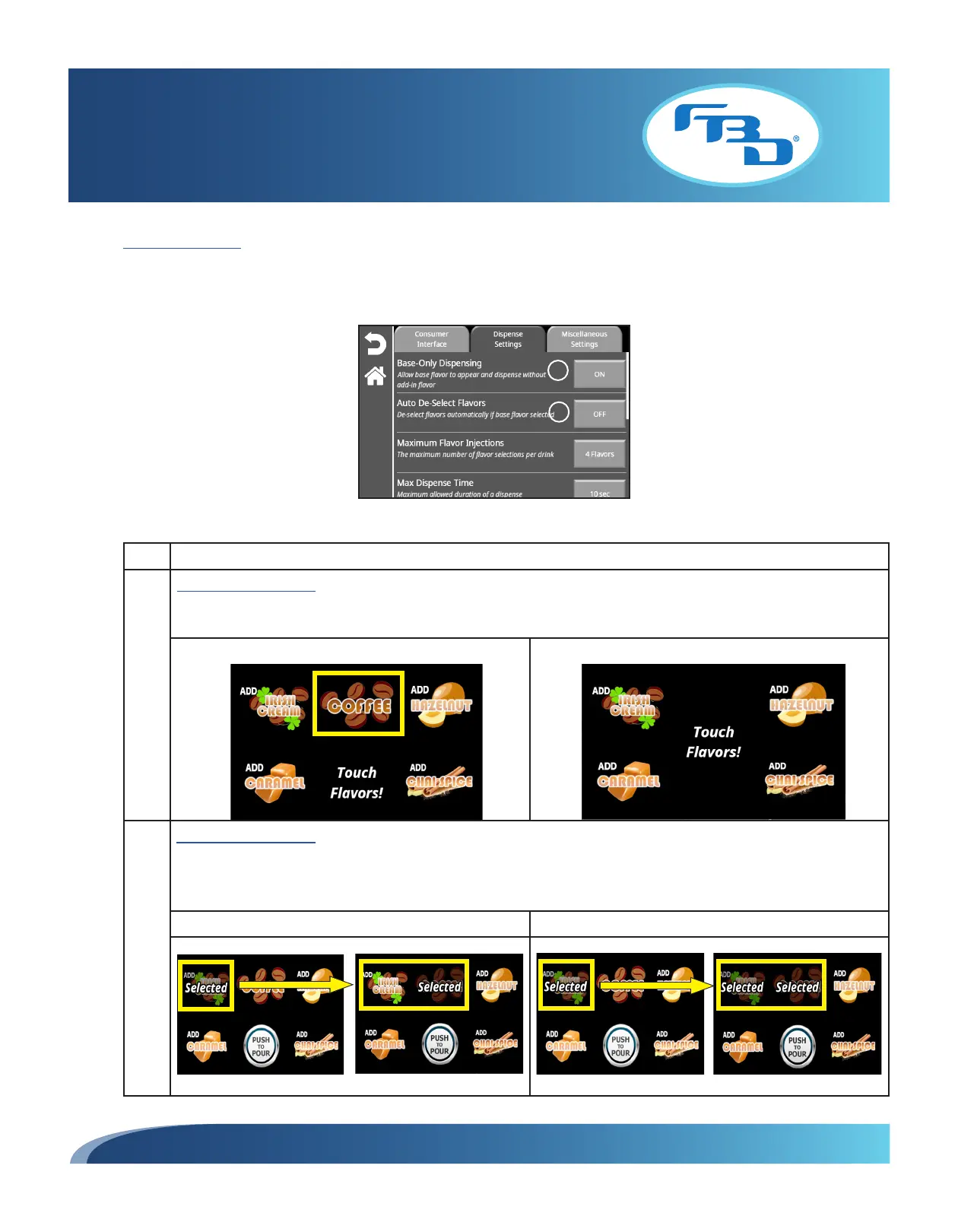 on the main screen, giving the option to dispense the base flavor by itself without any flavor add-ins. When "OFF",