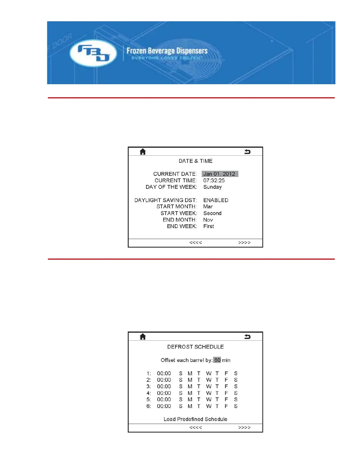 There are also predefined defrost schedules available. Contact FBD for details on the various schedules.