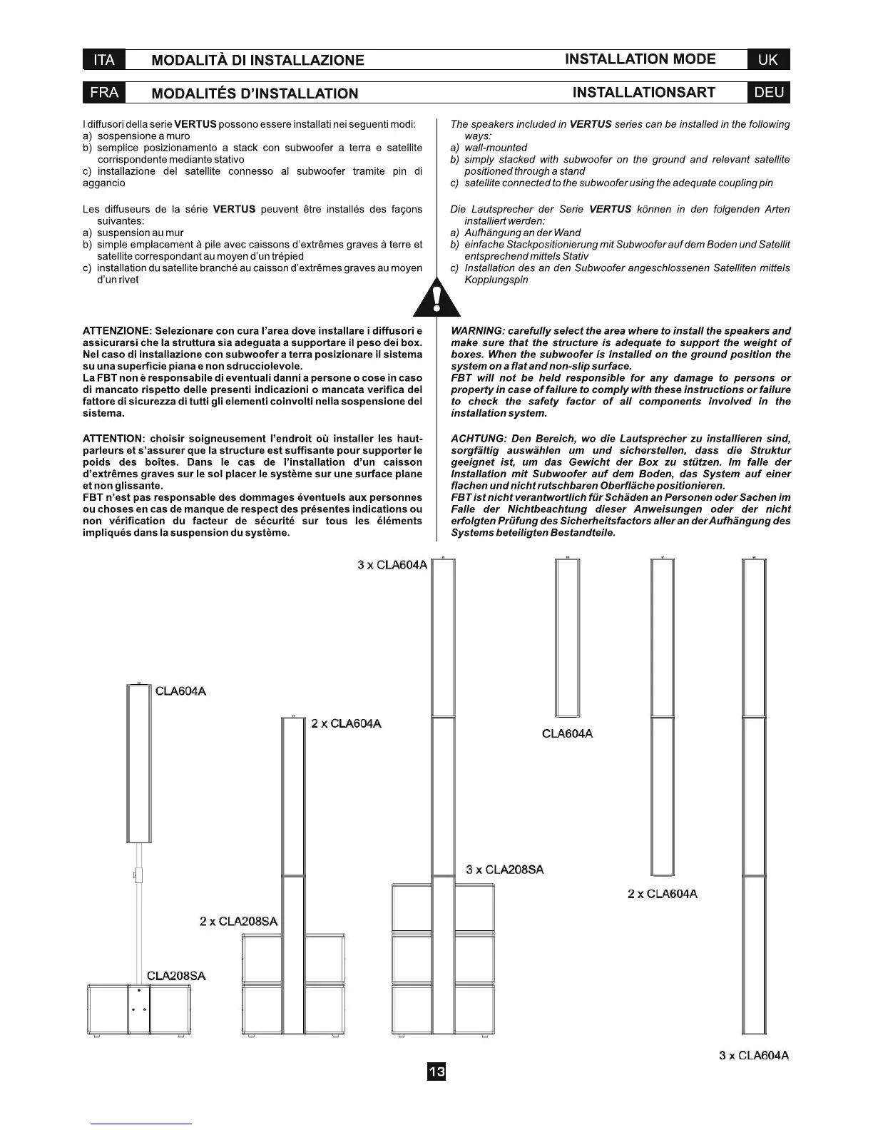 Fbt CLA 604A - Installation Modes; Installation Options