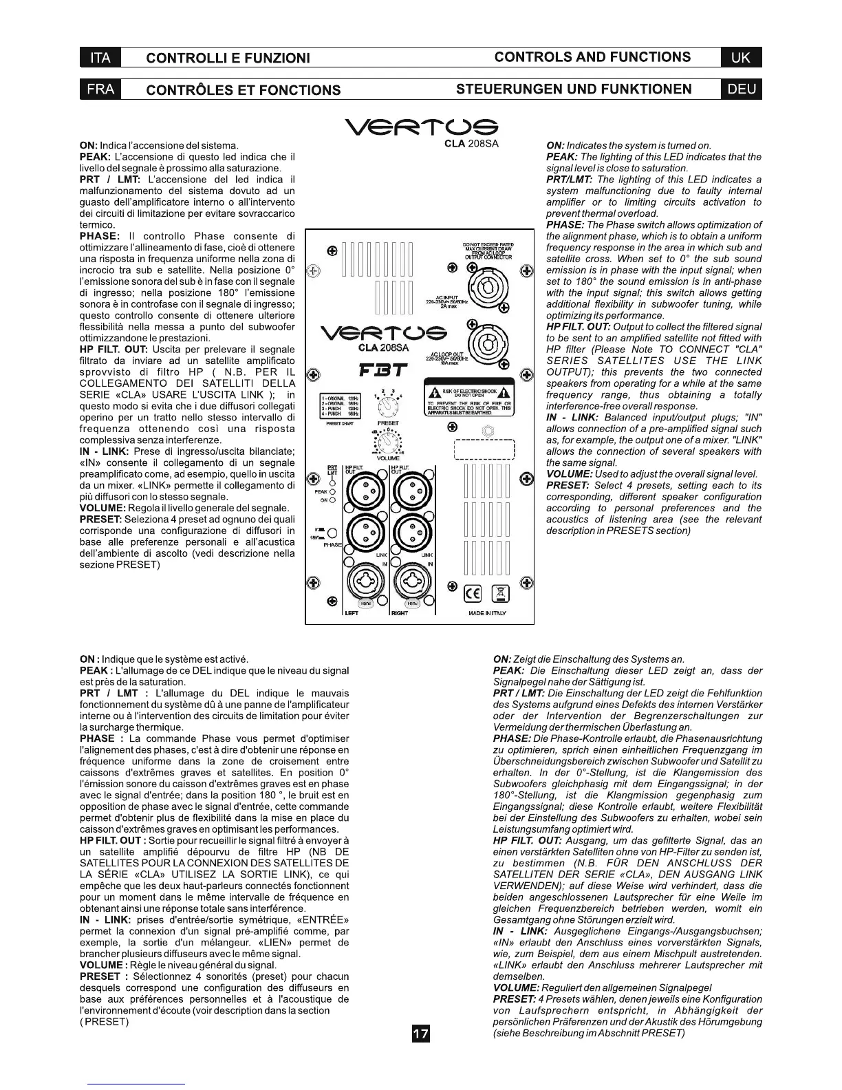Fbt CLA 604A - CLA 208 SA Controls and Features