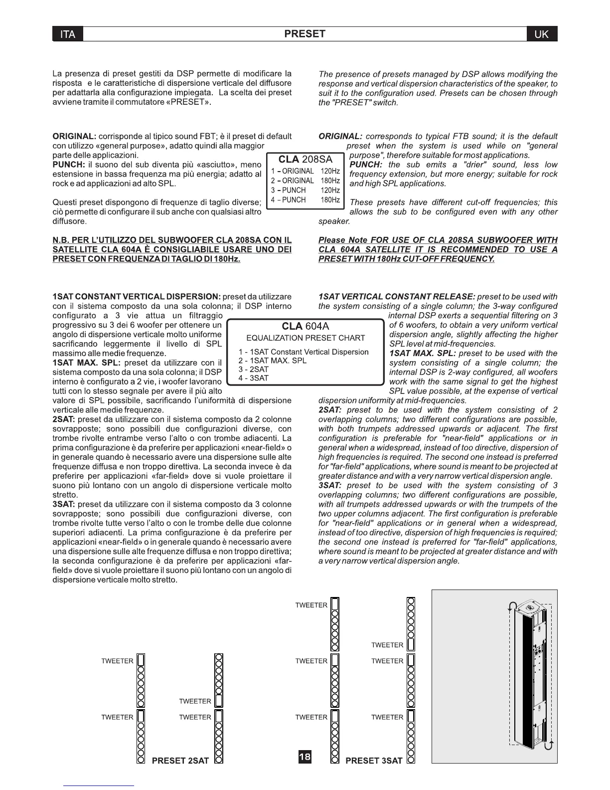Fbt CLA 604A - Presets; CLA 208 SA Presets; CLA 604 A Vertical Dispersion Presets