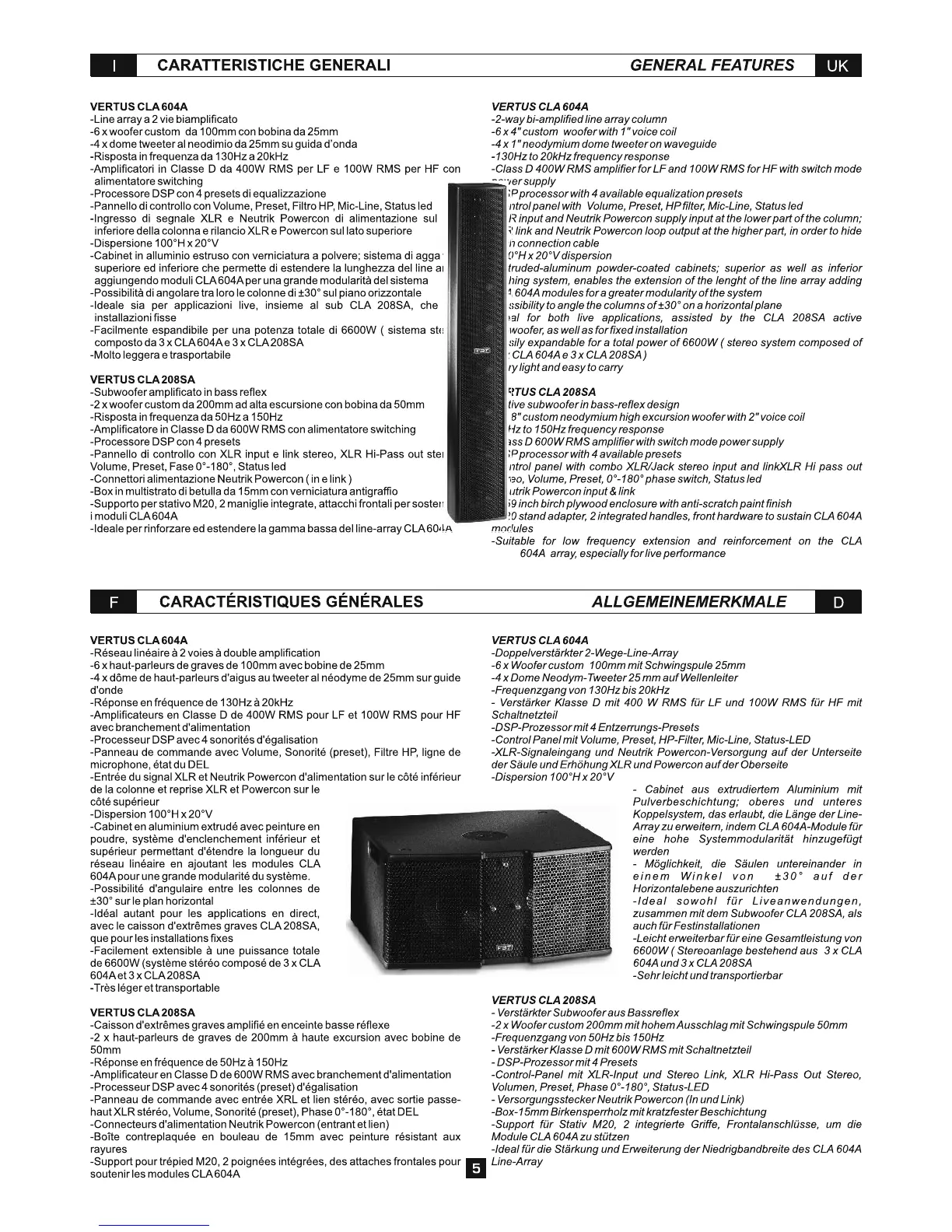 Fbt CLA 604A - VERTUS CLA 604 A Specifications; VERTUS CLA 208 SA Specifications