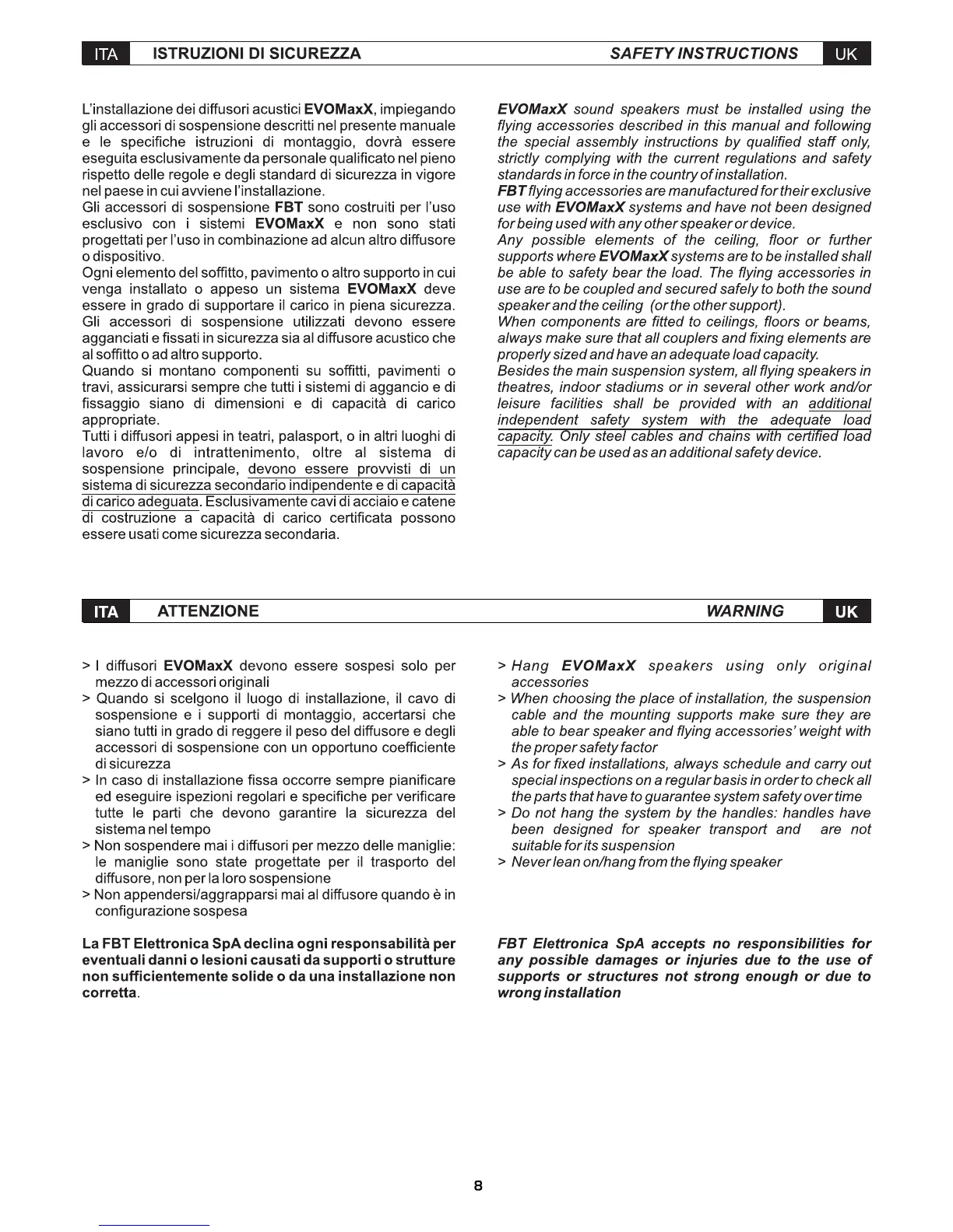 Fbt EVOMaxX 2A - Installation Safety Guidelines; Installation Requirements; Installation Safety Warnings