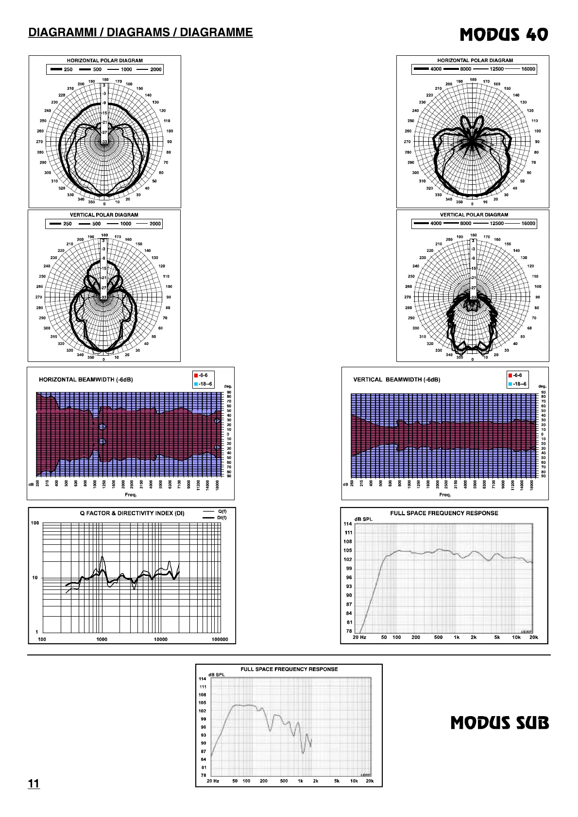 Fbt MODUS Series - Polar Diagrams, Beamwidth, and Frequency Response; MODUS 40 Horizontal Polar Diagrams; MODUS 40 Vertical Polar Diagrams; MODUS 40 Beamwidth Data