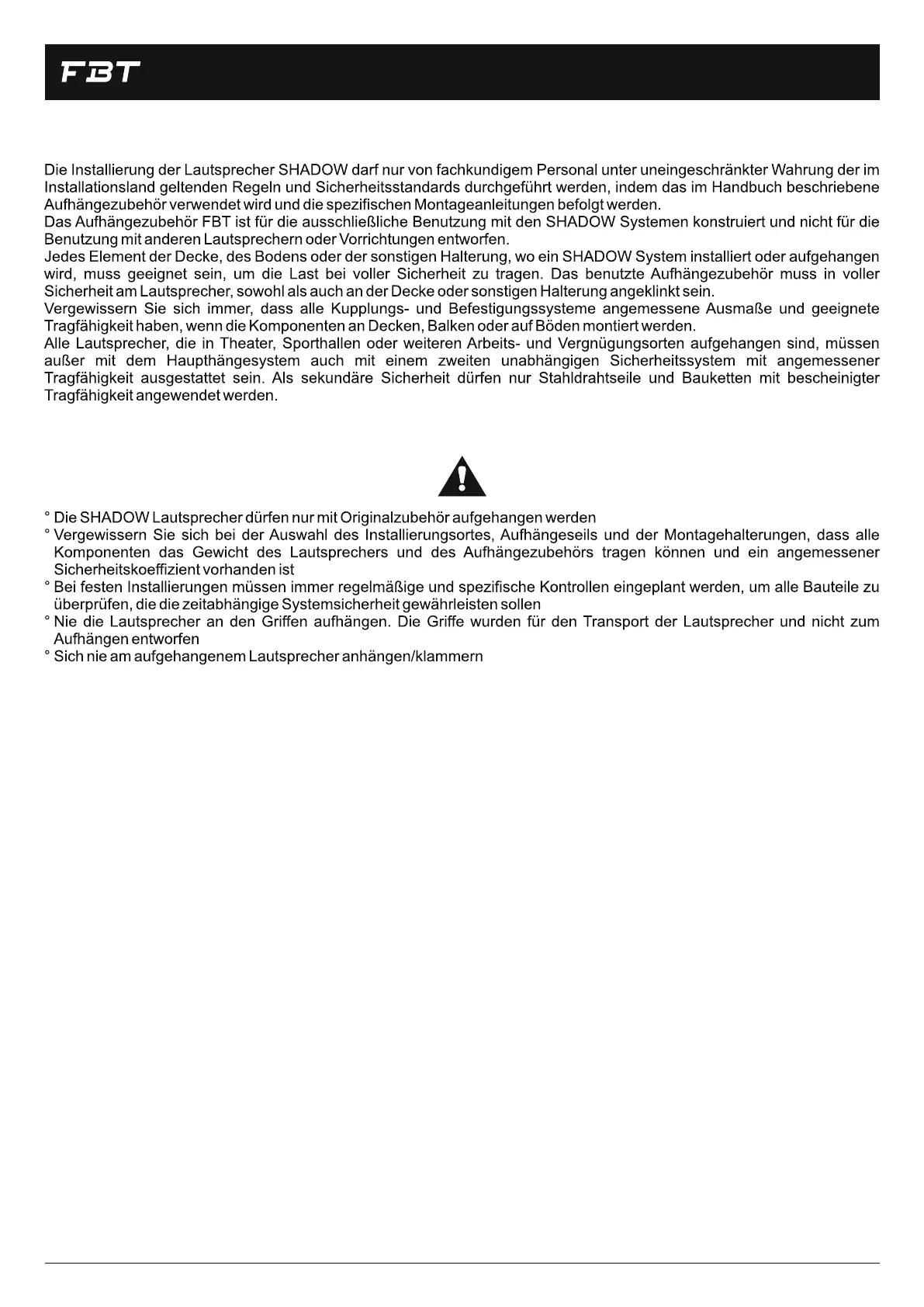 Fbt SHADOW 105T - Installation