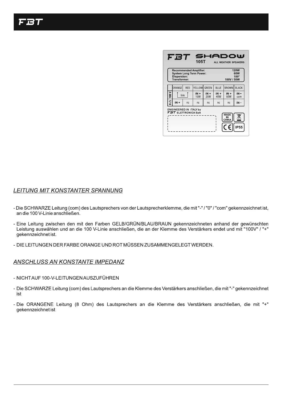 "100V" / "+" / gekennzeichnet ist.