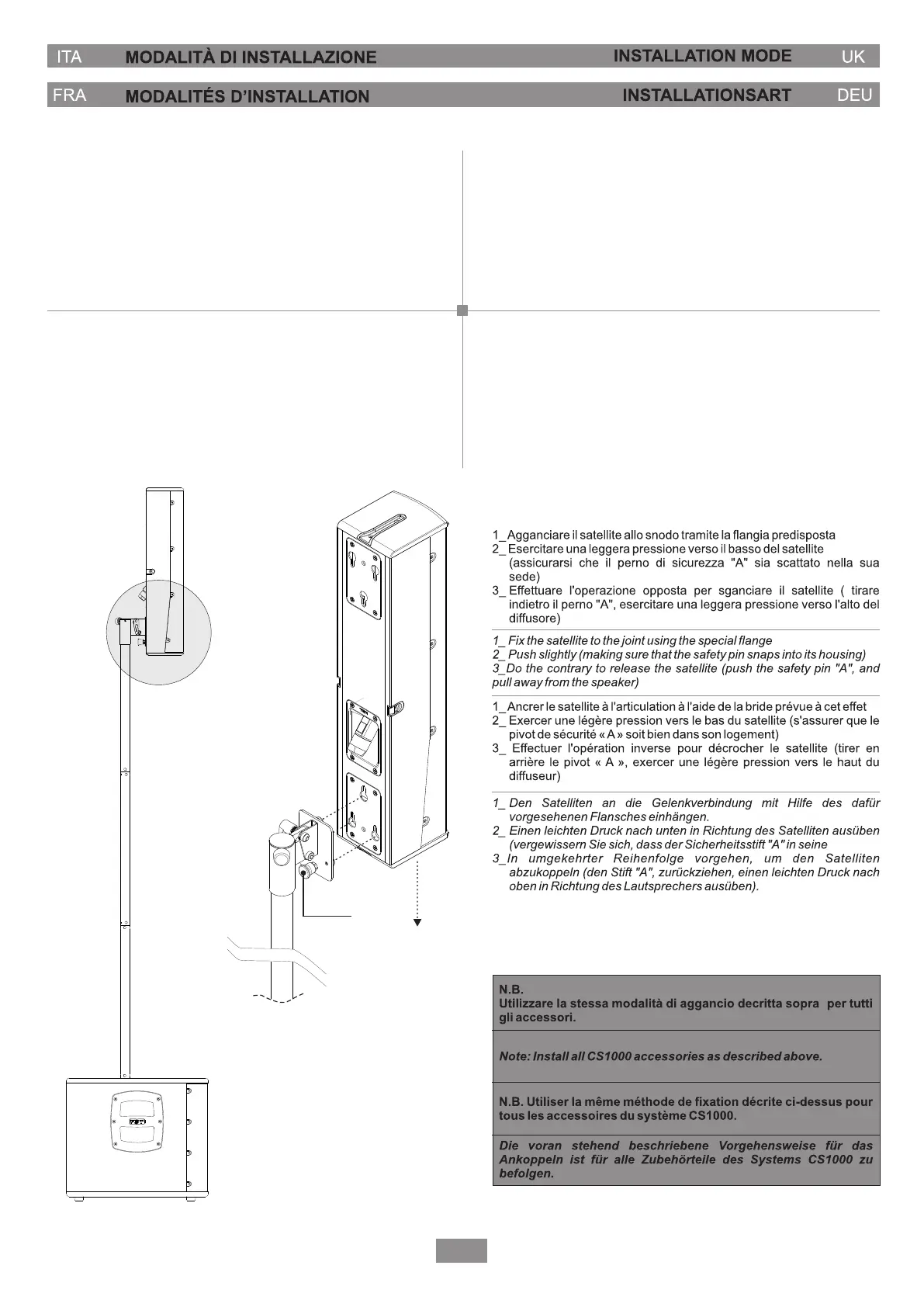 - Posizionamento a stack mediante stativo, con subwoofer a terra e satellite