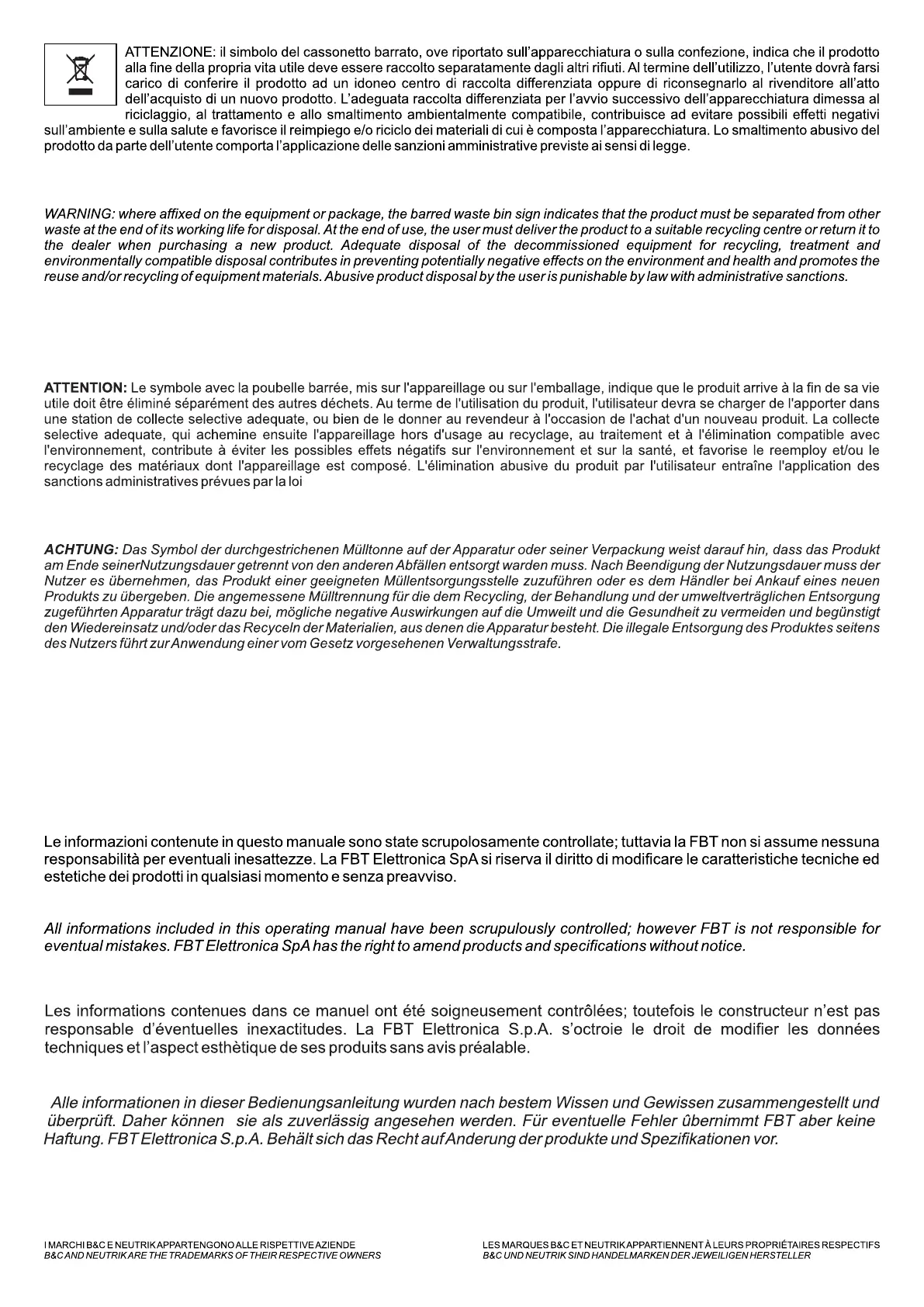 Fbt Vertus CS1000 - Environmental Disposal Information
