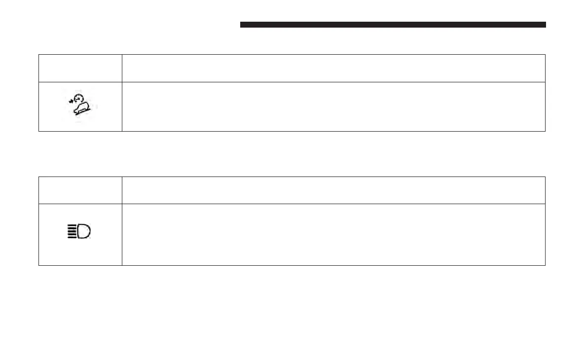 This indicator shows that the high beam headlights are on. Push the multifunction control lever