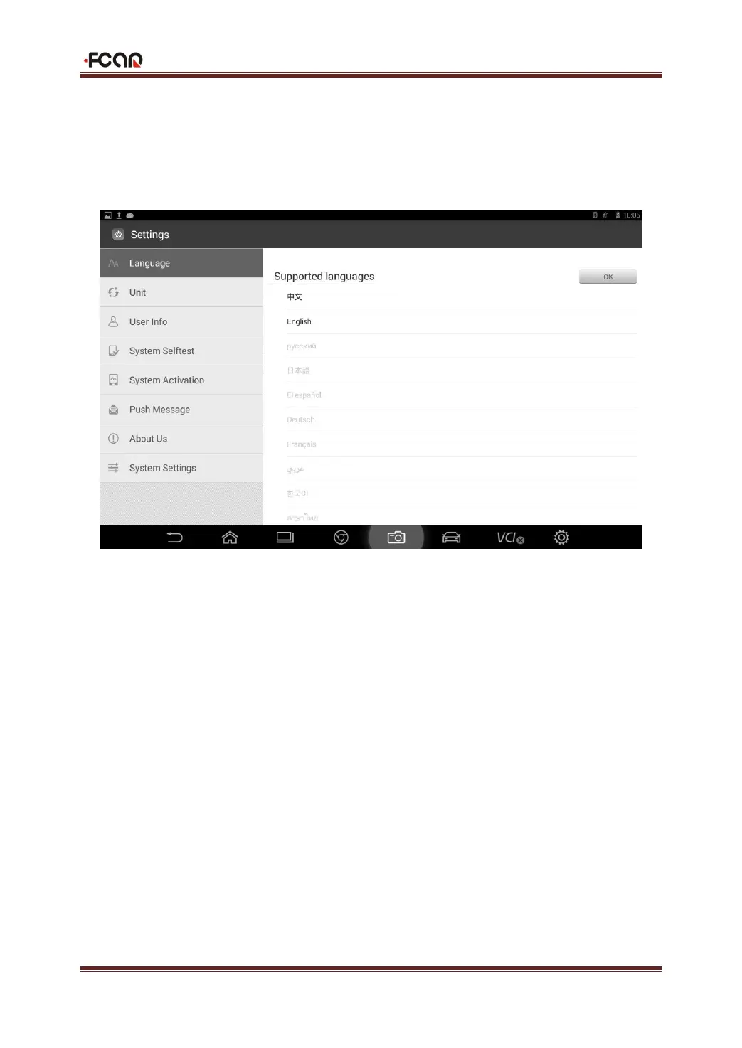 Fcar F7S-G - 3.7 System Settings - Language; Language Settings