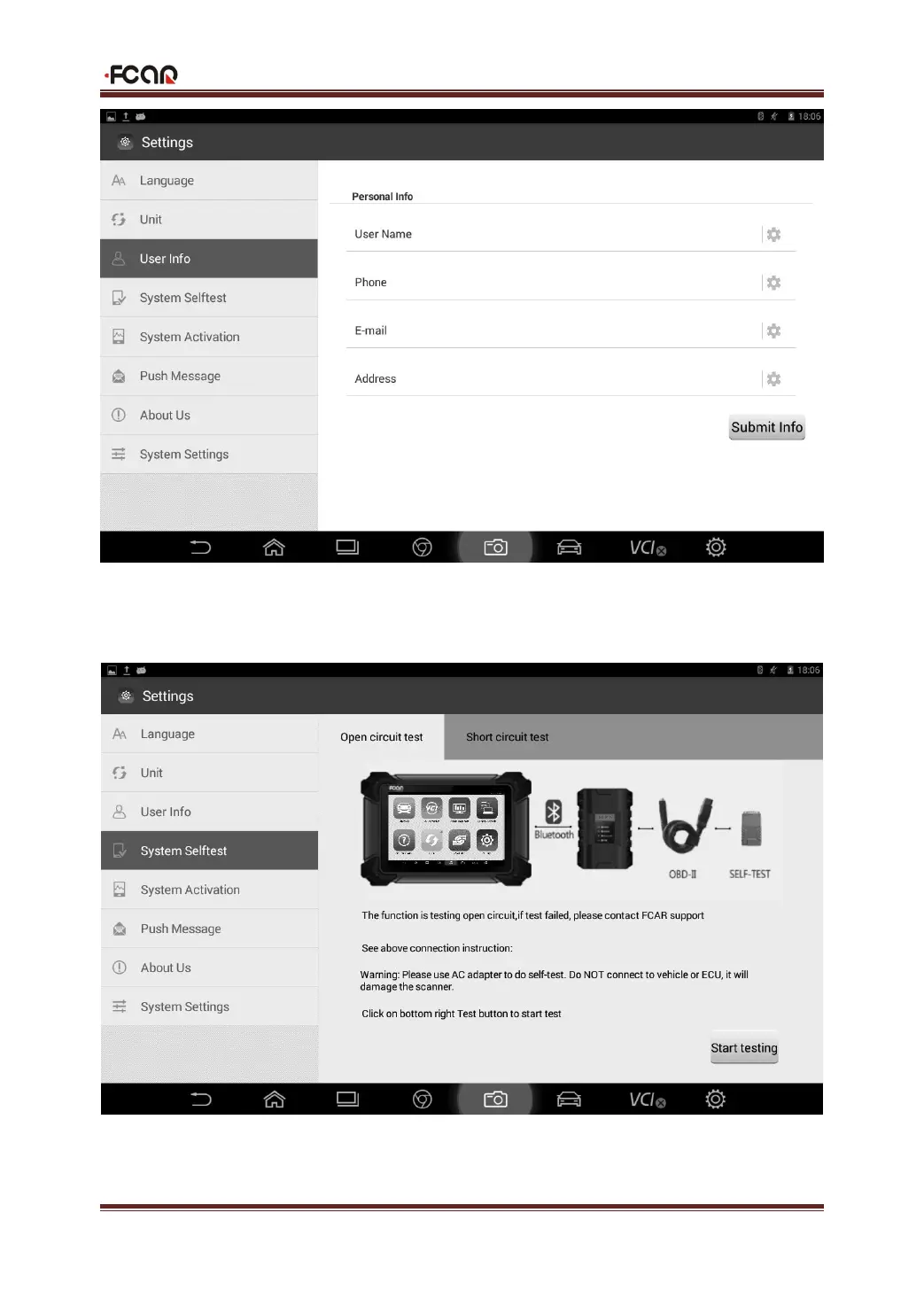 Fcar F7S-G - 3.7 System Settings - Self-Test & Activation; Self-Test Procedure; Product Activation
