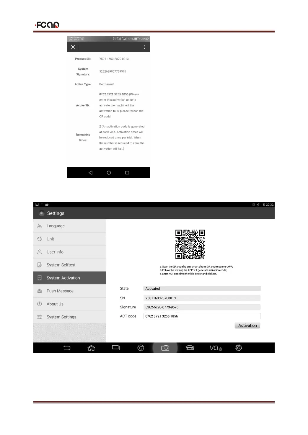 4. Fill in the activation code to the machine and click [Activate].