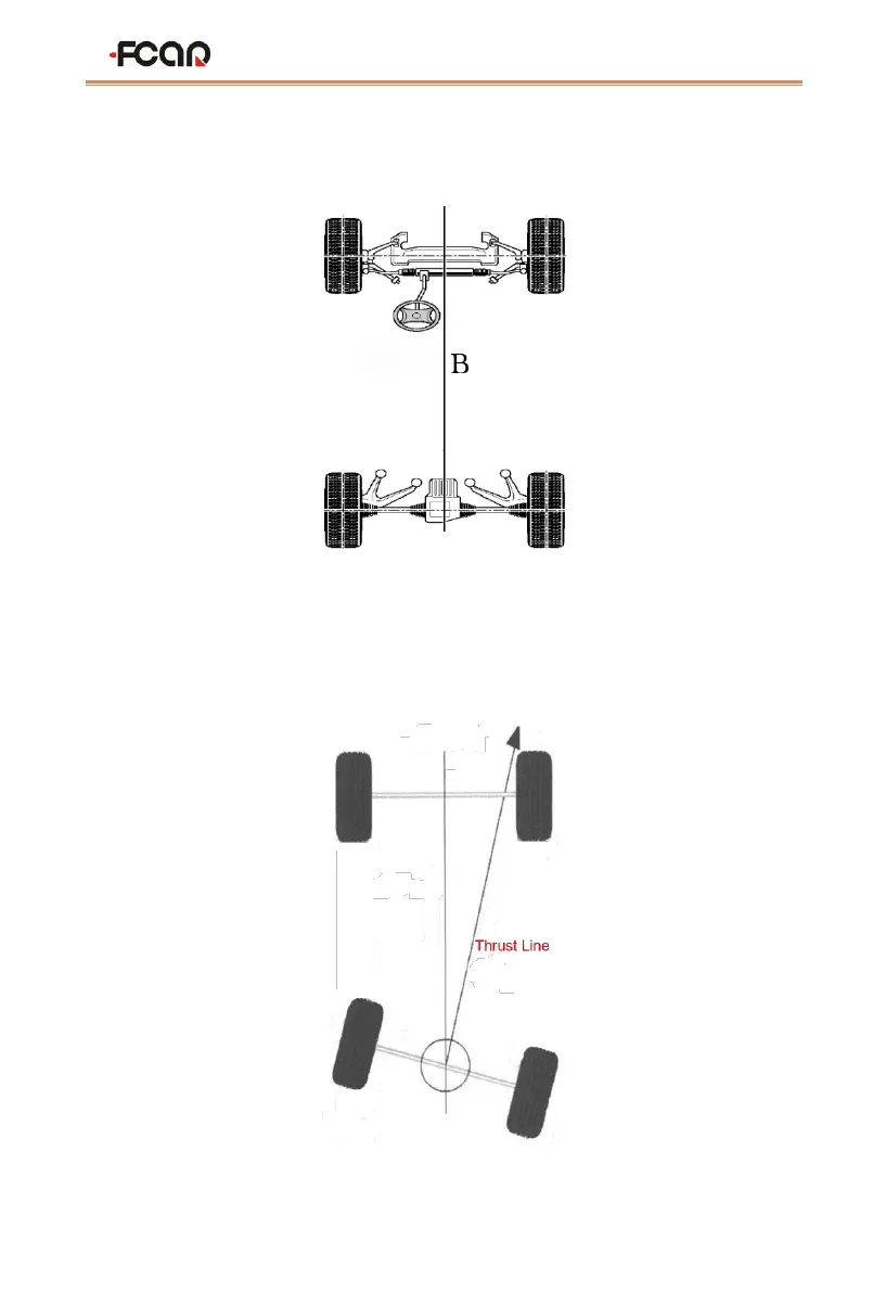 The bisector of the toe angle of the vehicle rear wheel is called the thrust line, and the