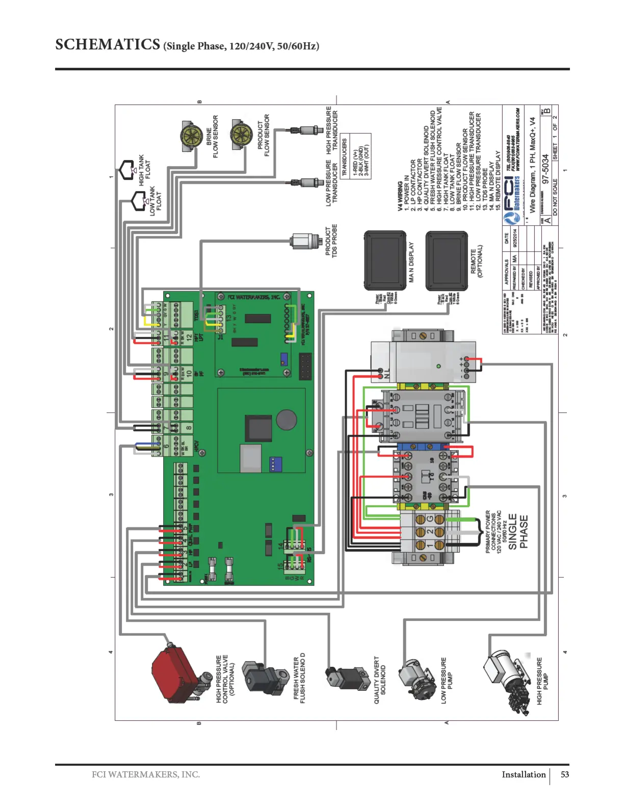 FCI Watermakers MAX-Q+ - SCHEMATICS (Single Phase, 120;240 V, 50;60 Hz)