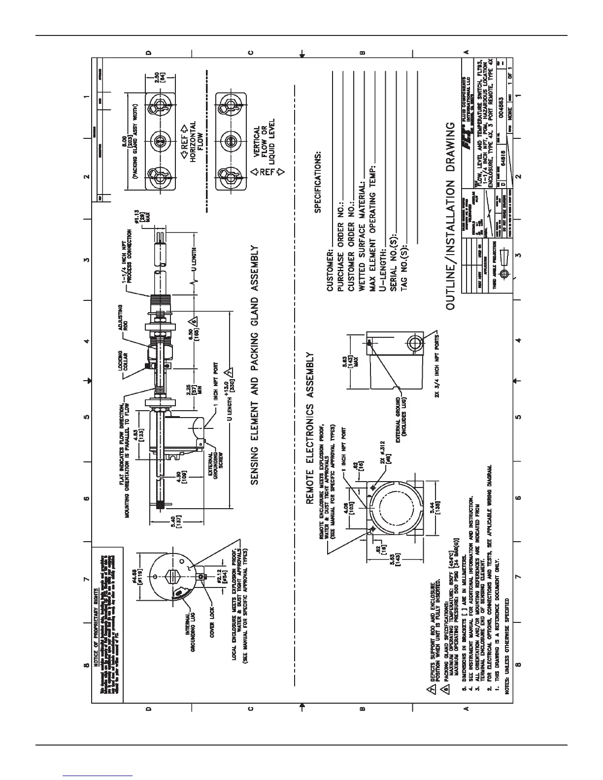 1-1/4” NPT, Medium Pressure Packing Gland with Local Hazardous Location Type 4X Enclosure: 3-Port Remote Type 4X