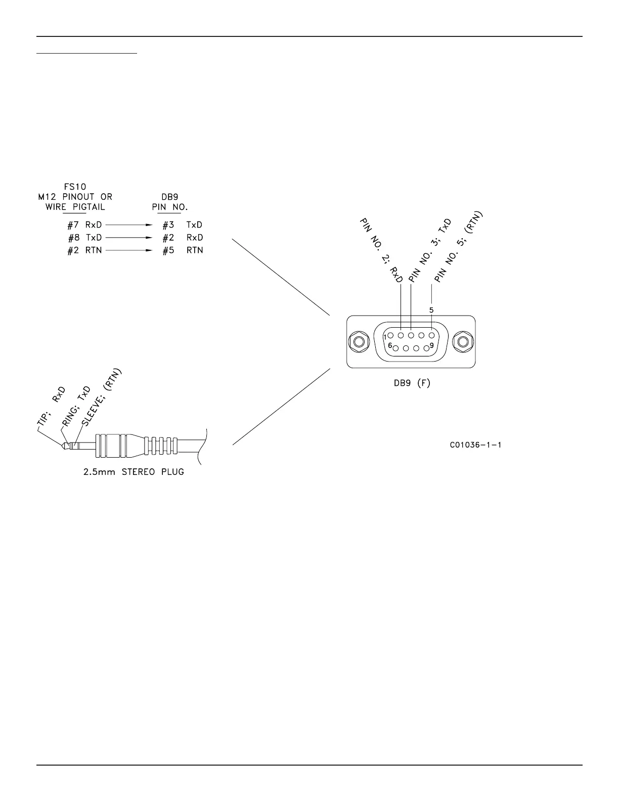RS-232 through 2.5 mm TRS (Stereo) Plug