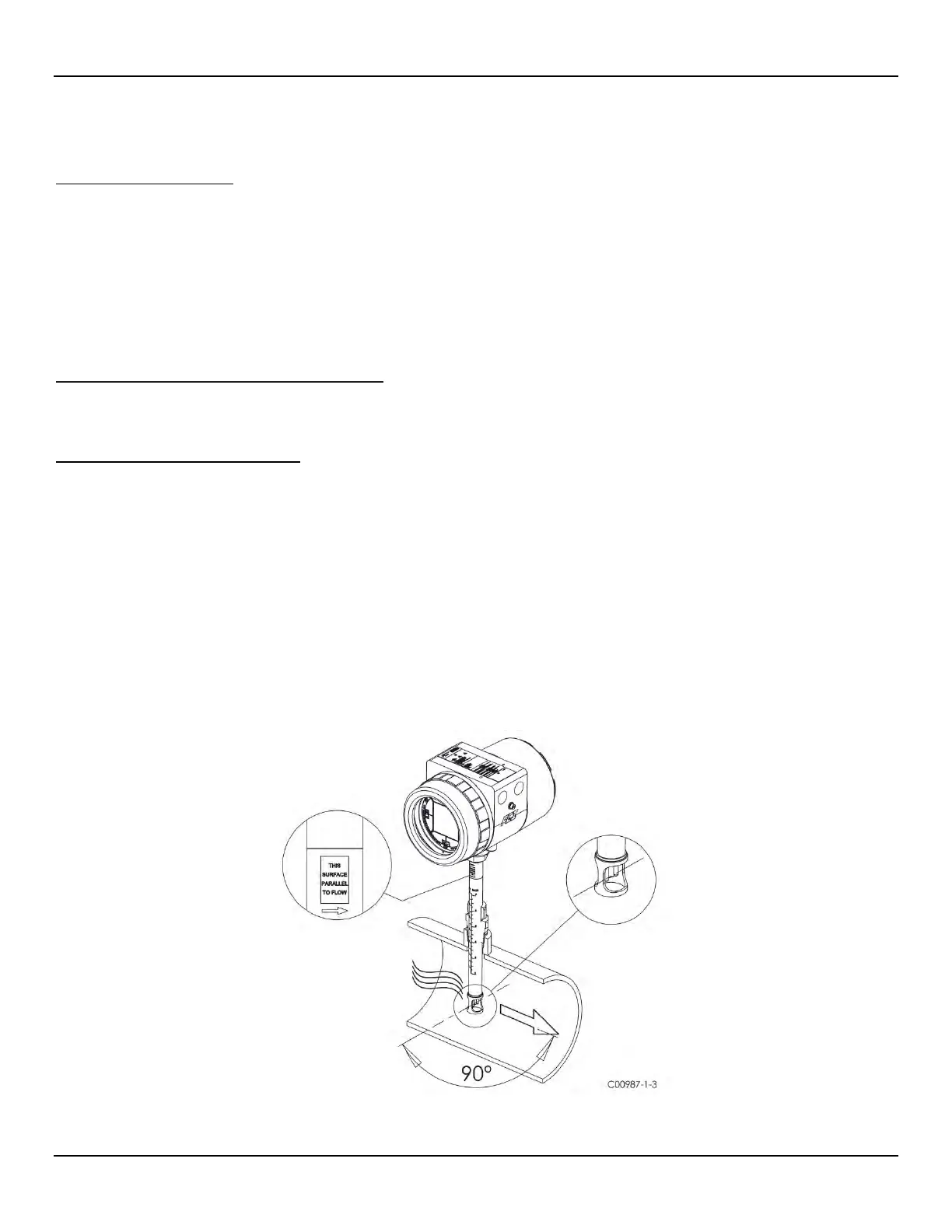 insertion length ½” inch past the centerline of the process pipe or tube with the flow direction arrow correctly aligned and leveled. After the flow ele-