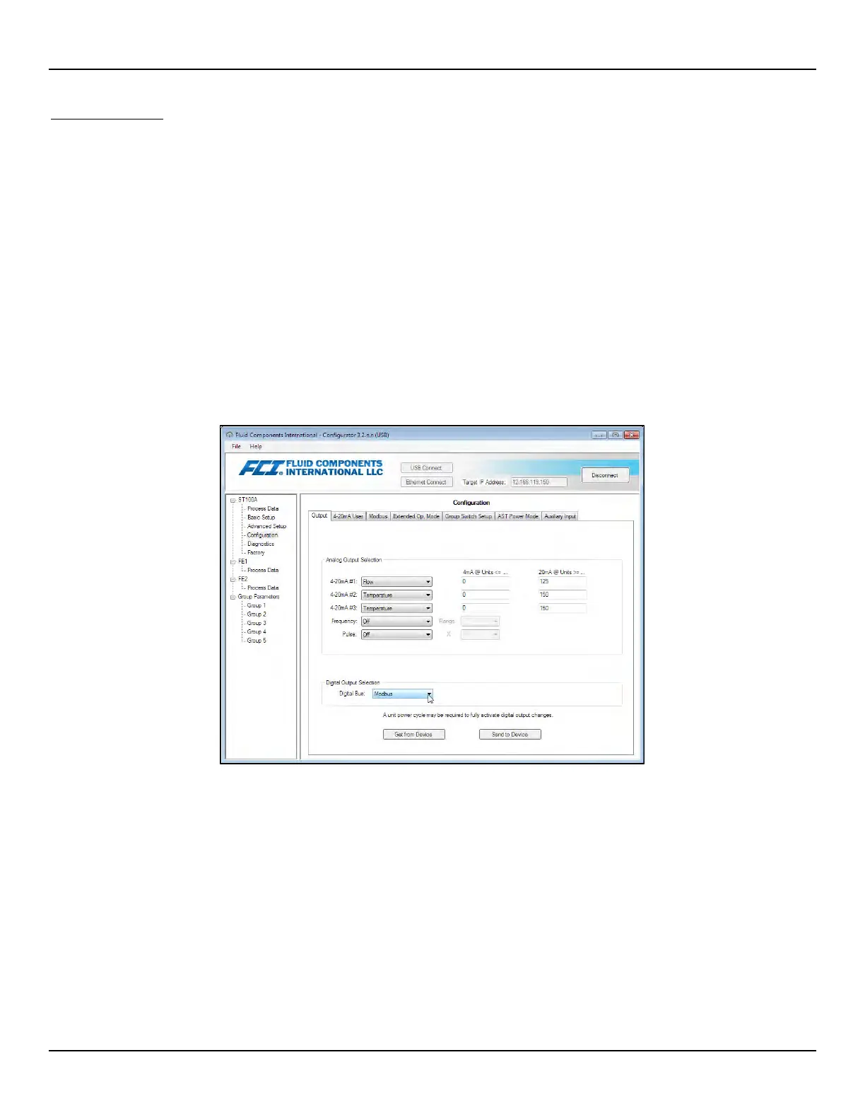 Modbus is shown for Digital Bus. If not, use the Digital Bus pulldown menu to select Modbus. Then click Send to Device to program the