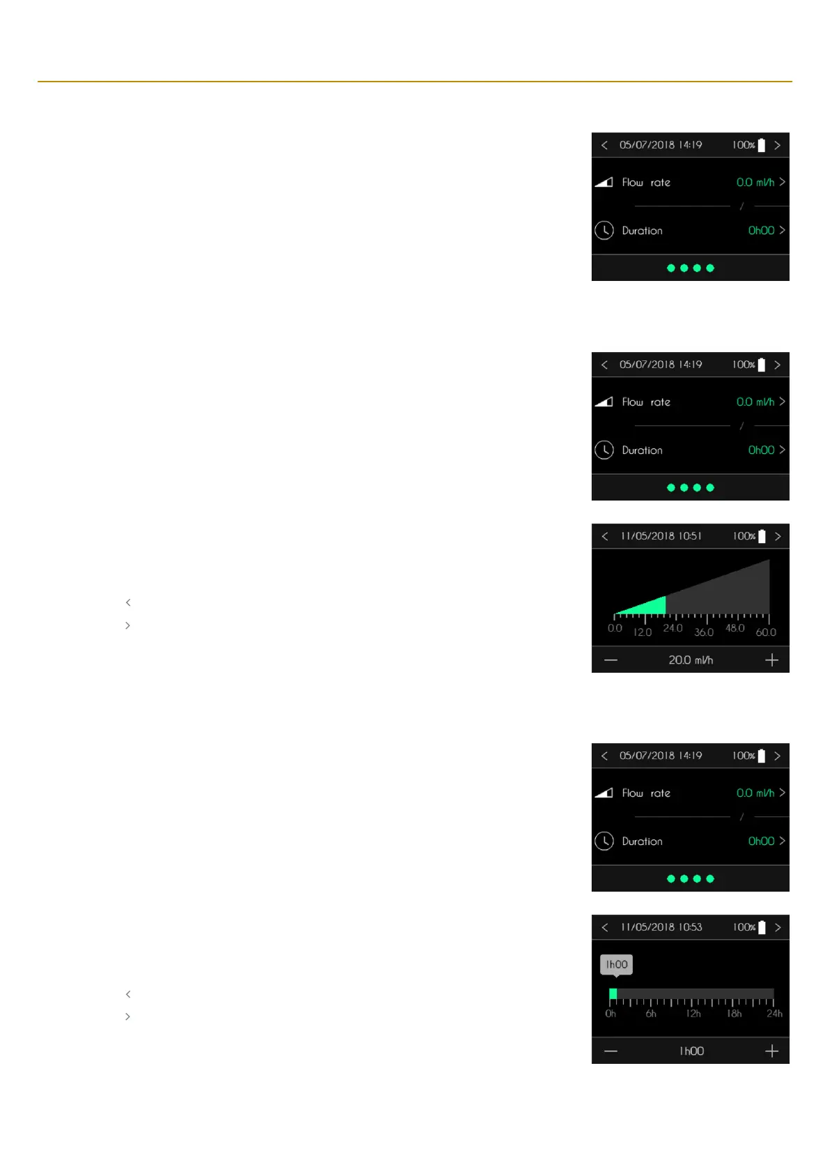 Step 3 : entering the flow rate or the duration of the infusion