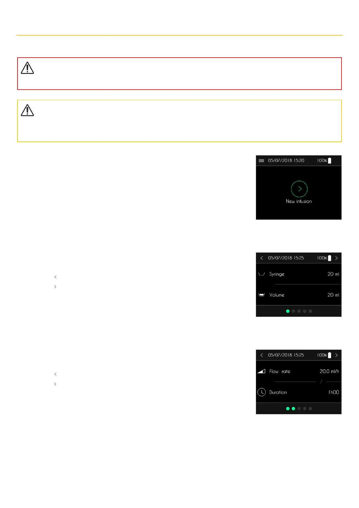 Before starting an infusion, check that the date and time are correct. The clinical datas are saved based on this information.