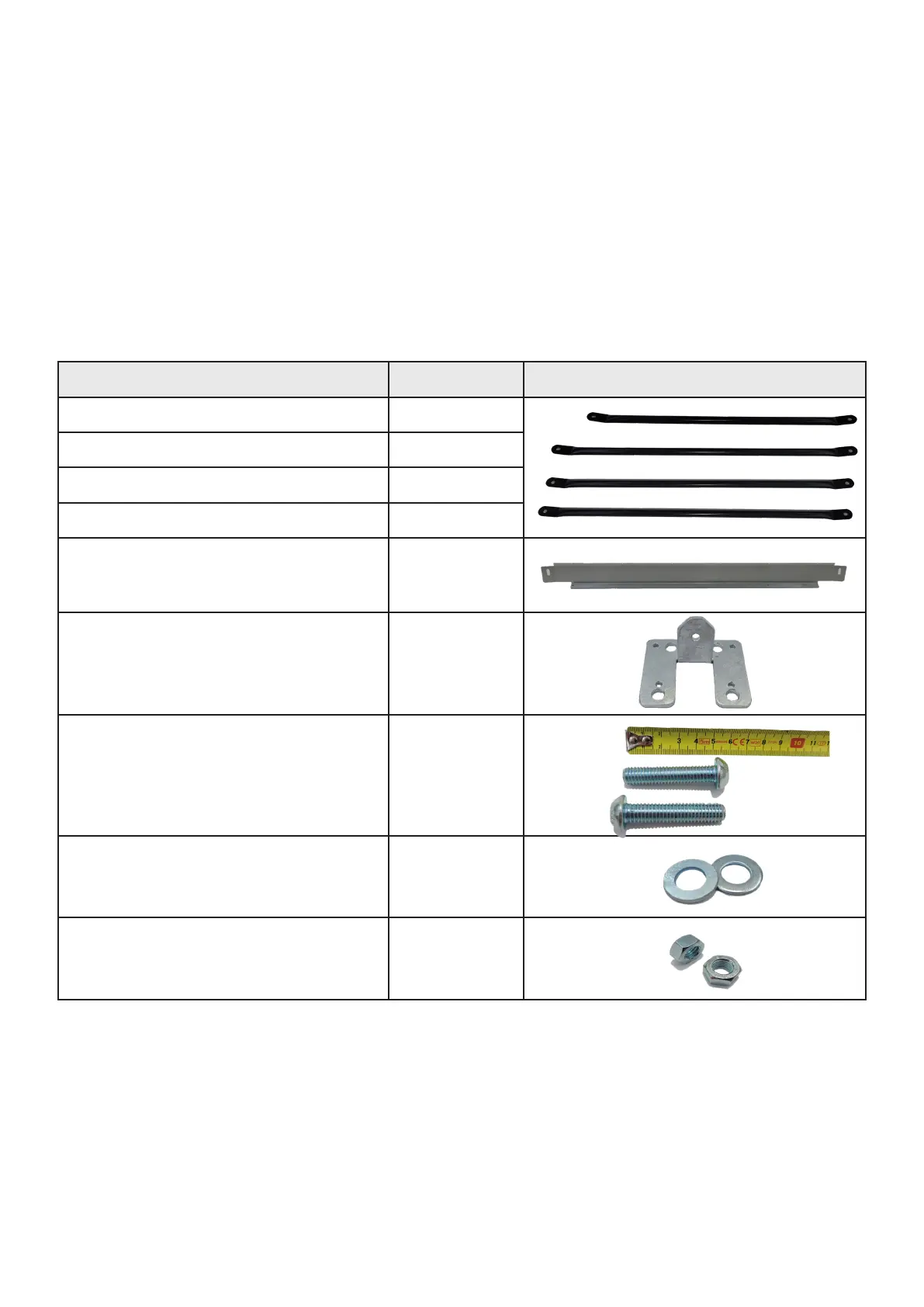 LIST OF THE SUPPLIED FOR THE STRUCTURE ASSEMBLY: