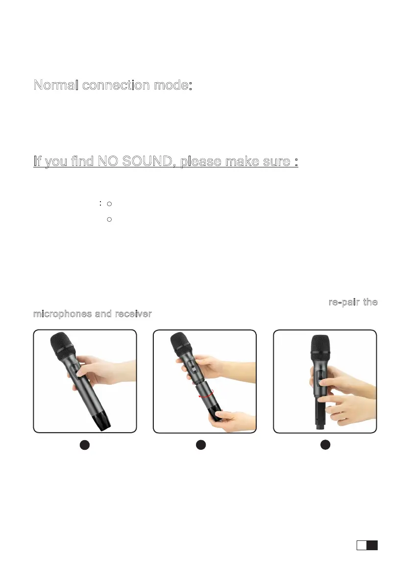 3.The microphones are paired to the receiver. If not, you can re-pair the