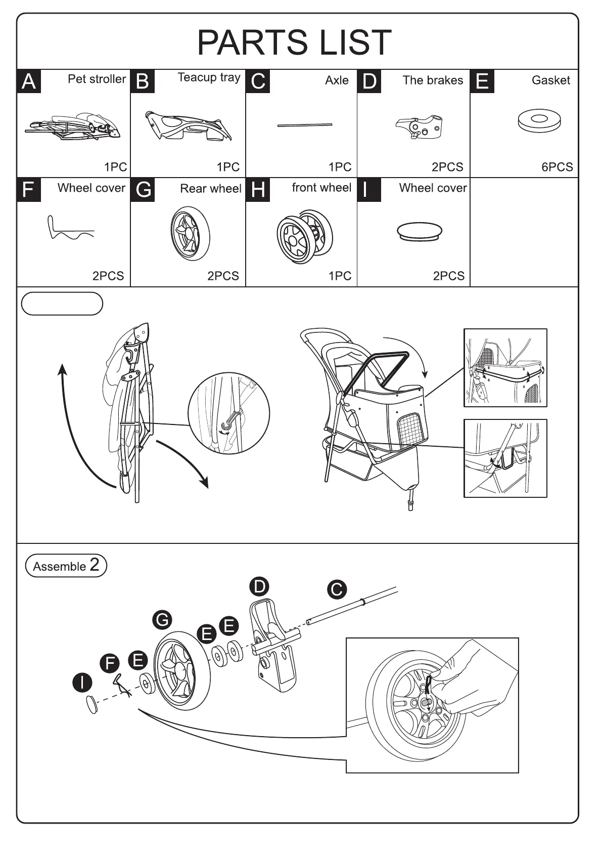 FDW BP-S13T - Parts List; Assembly Steps; Assemble 1: Attaching Basket; Assemble 2: Wheel Attachment