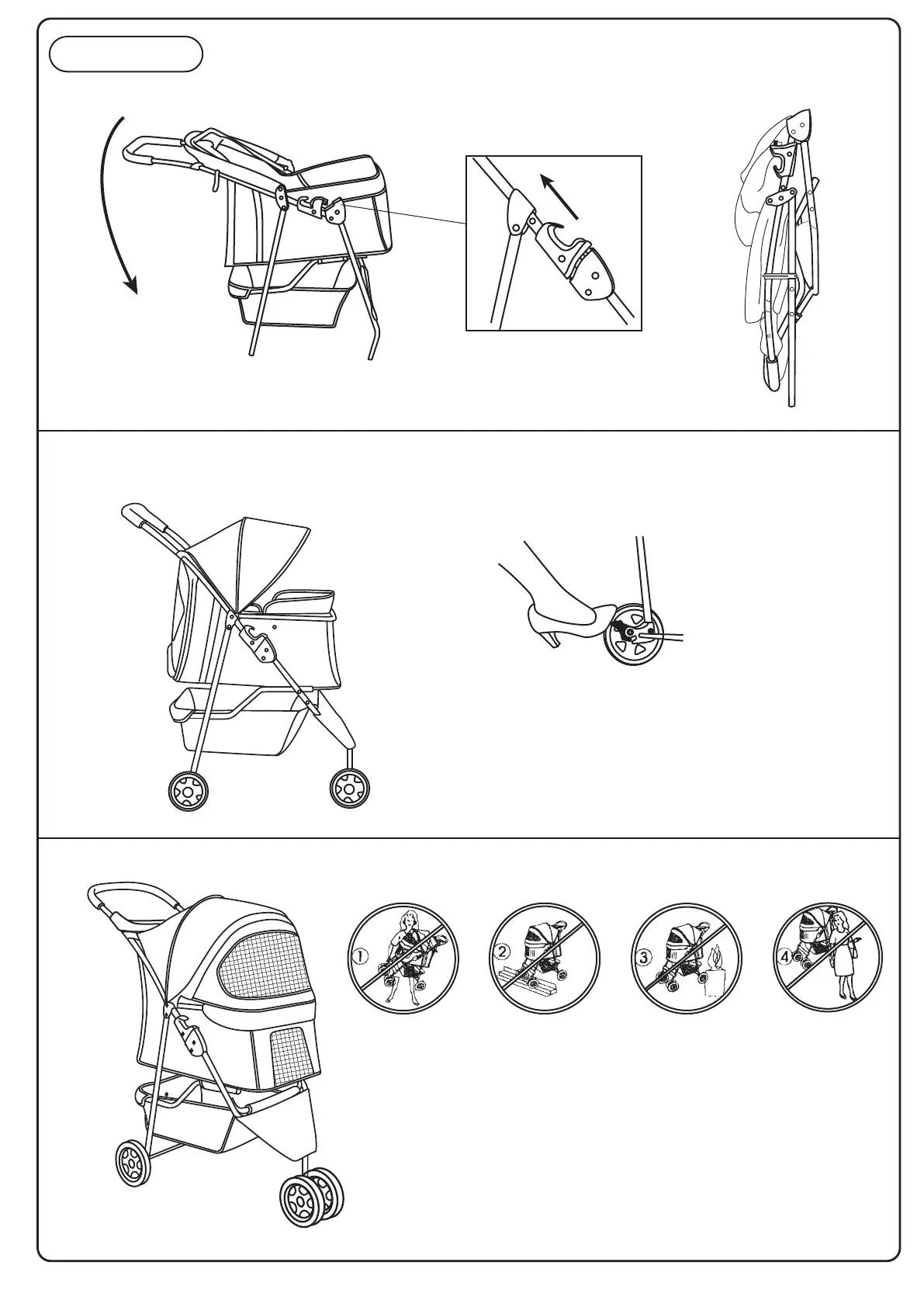 1.Do not lift up the stroller when the pet is in.