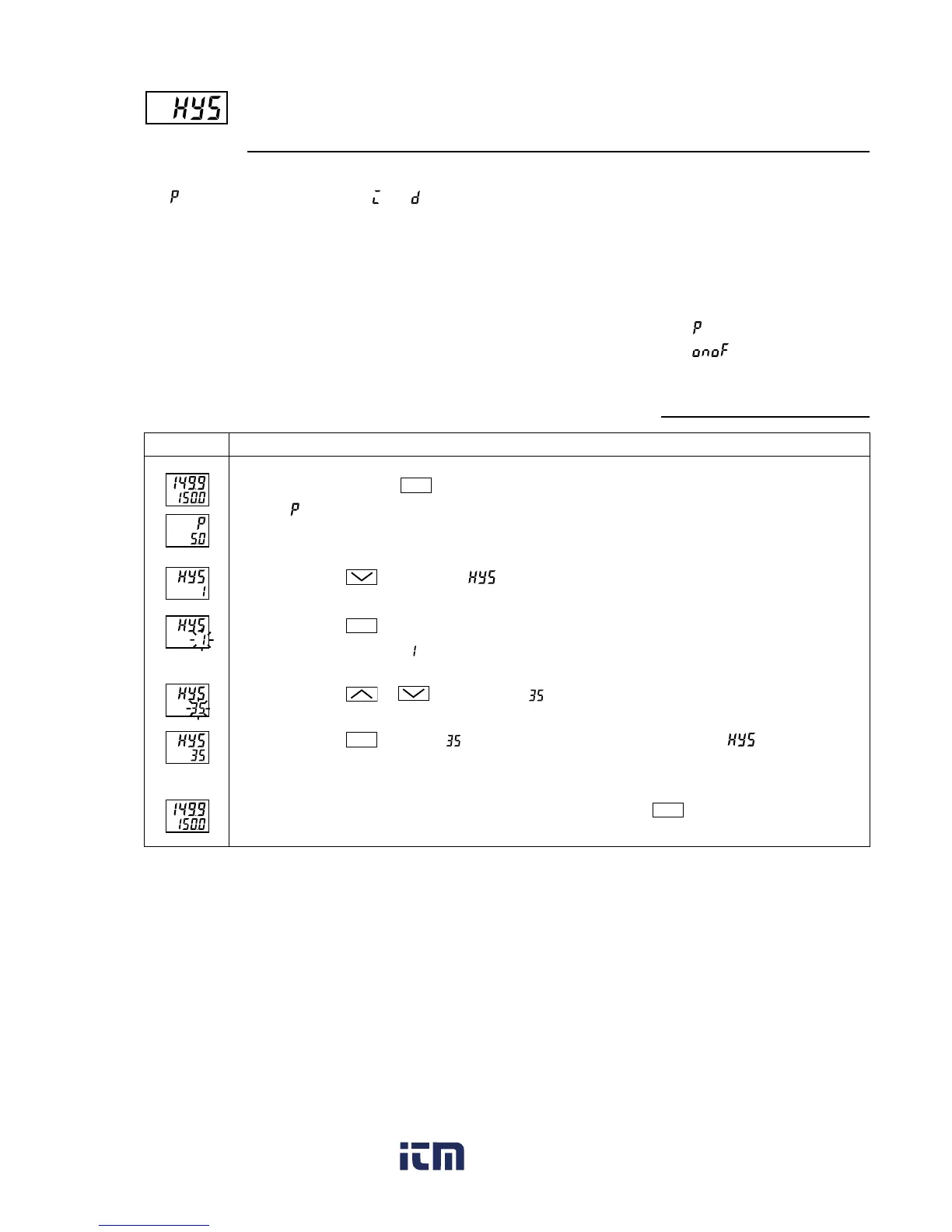 Hysteresis range for ON/OFF control (Setting range: 0 to 50%FS)