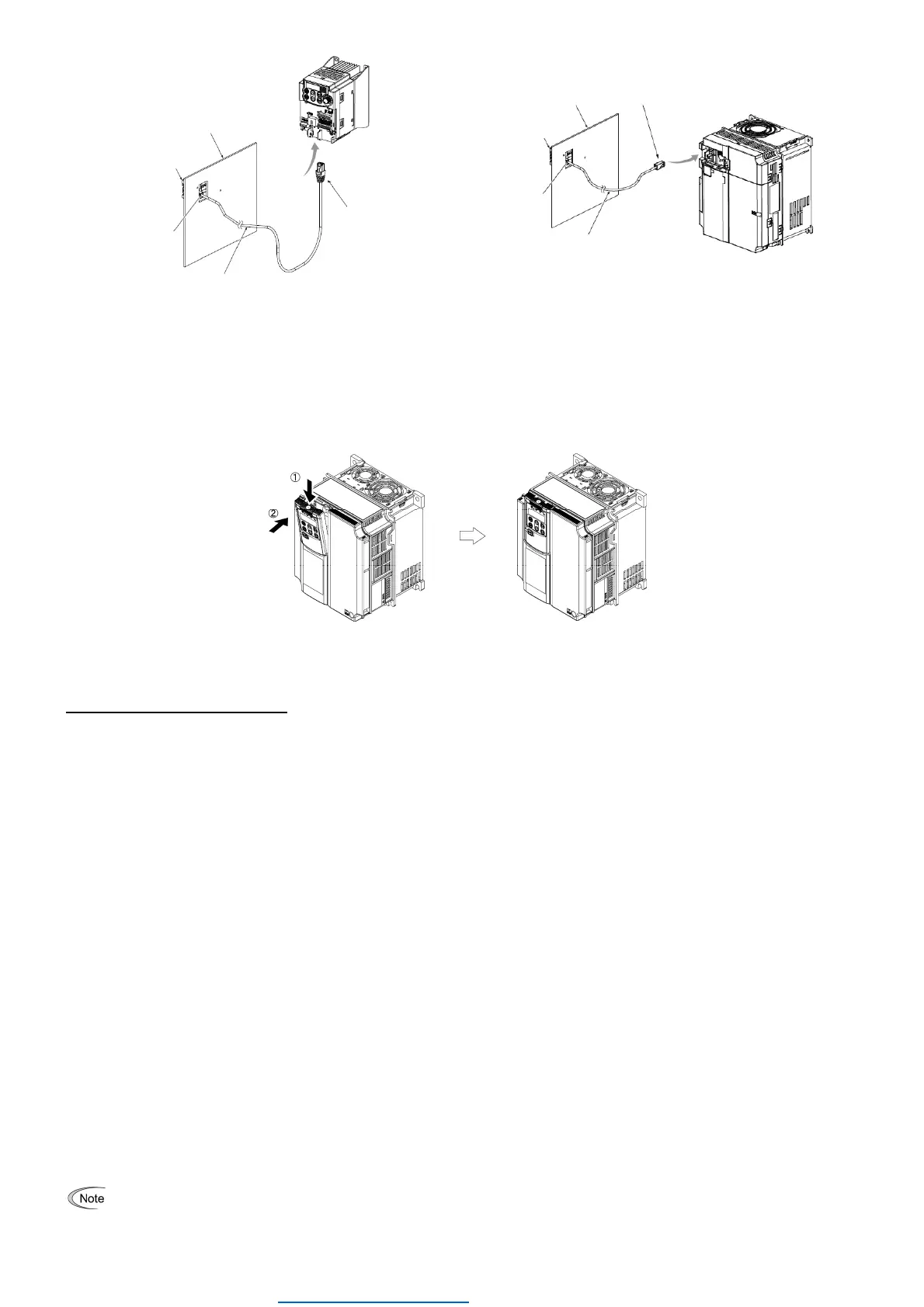 Mount the remote keypad on the inverter unit in the direction of arrows and . (In case of FRENIC MEGA series)