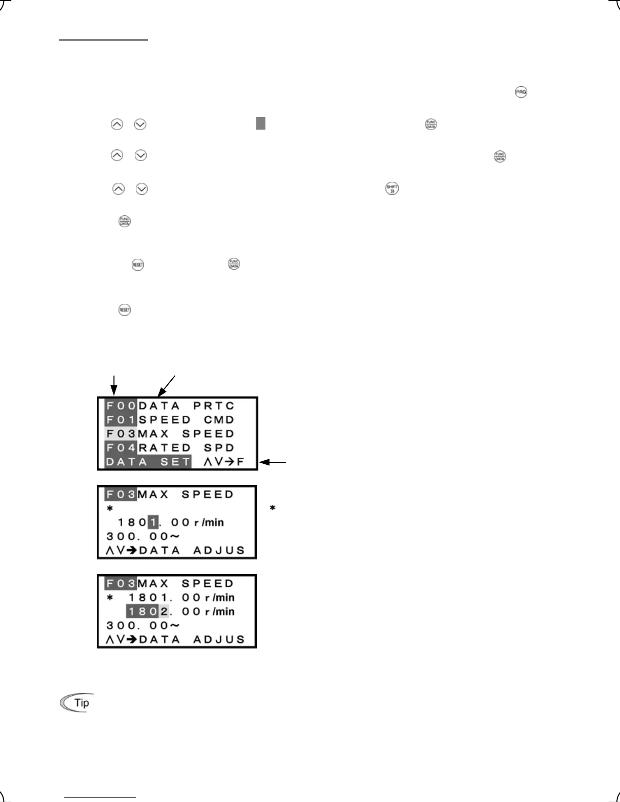 (4) Use the / keys to change the function code data. Pressing the key causes the blinking digit
