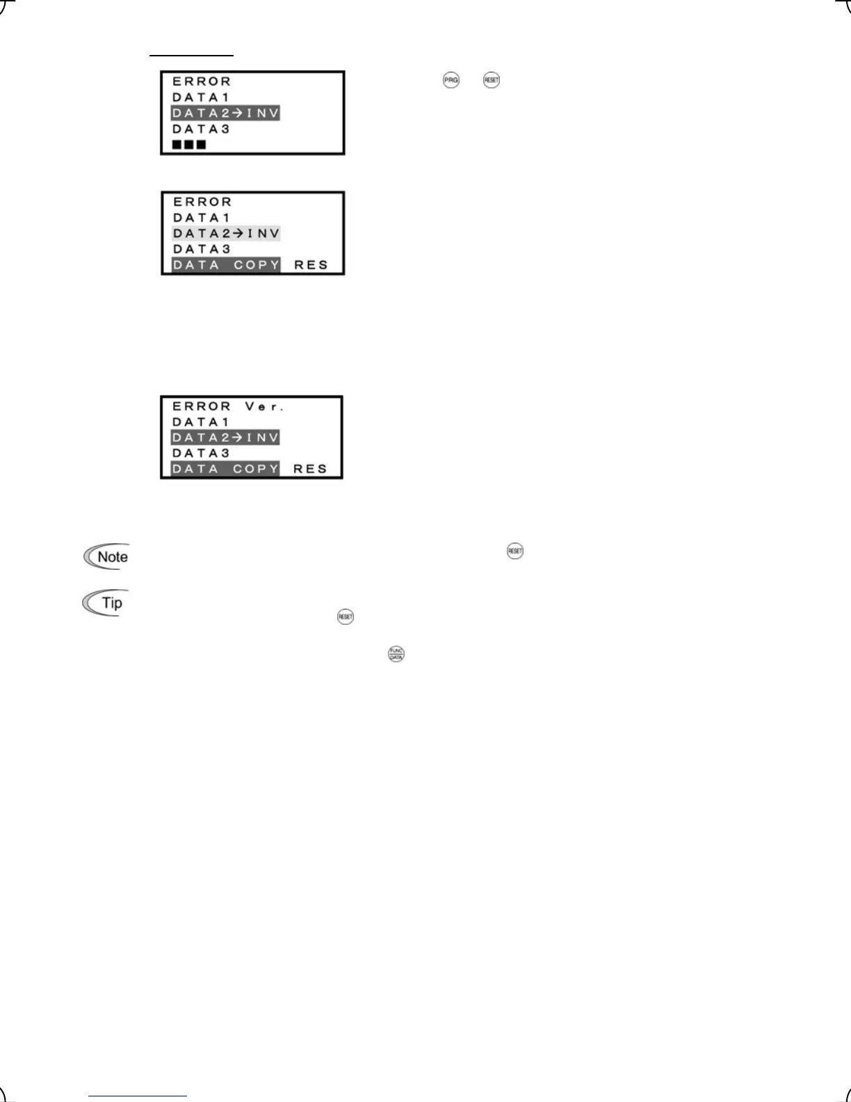 If an ERROR screen or ERROR Ver. screen appears, press the key. When Reset is complete, the