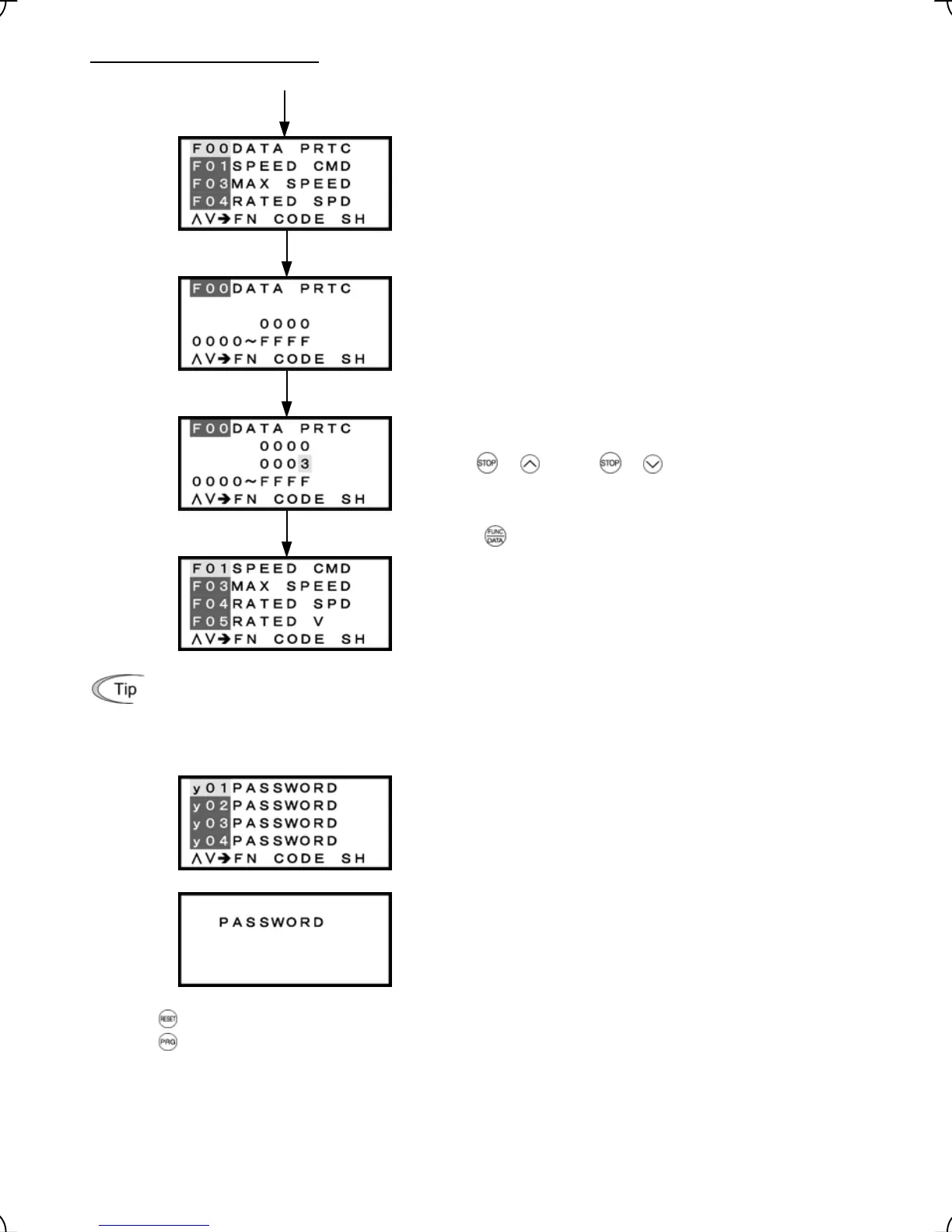 To change the F00 data (Data Protection), simultaneous