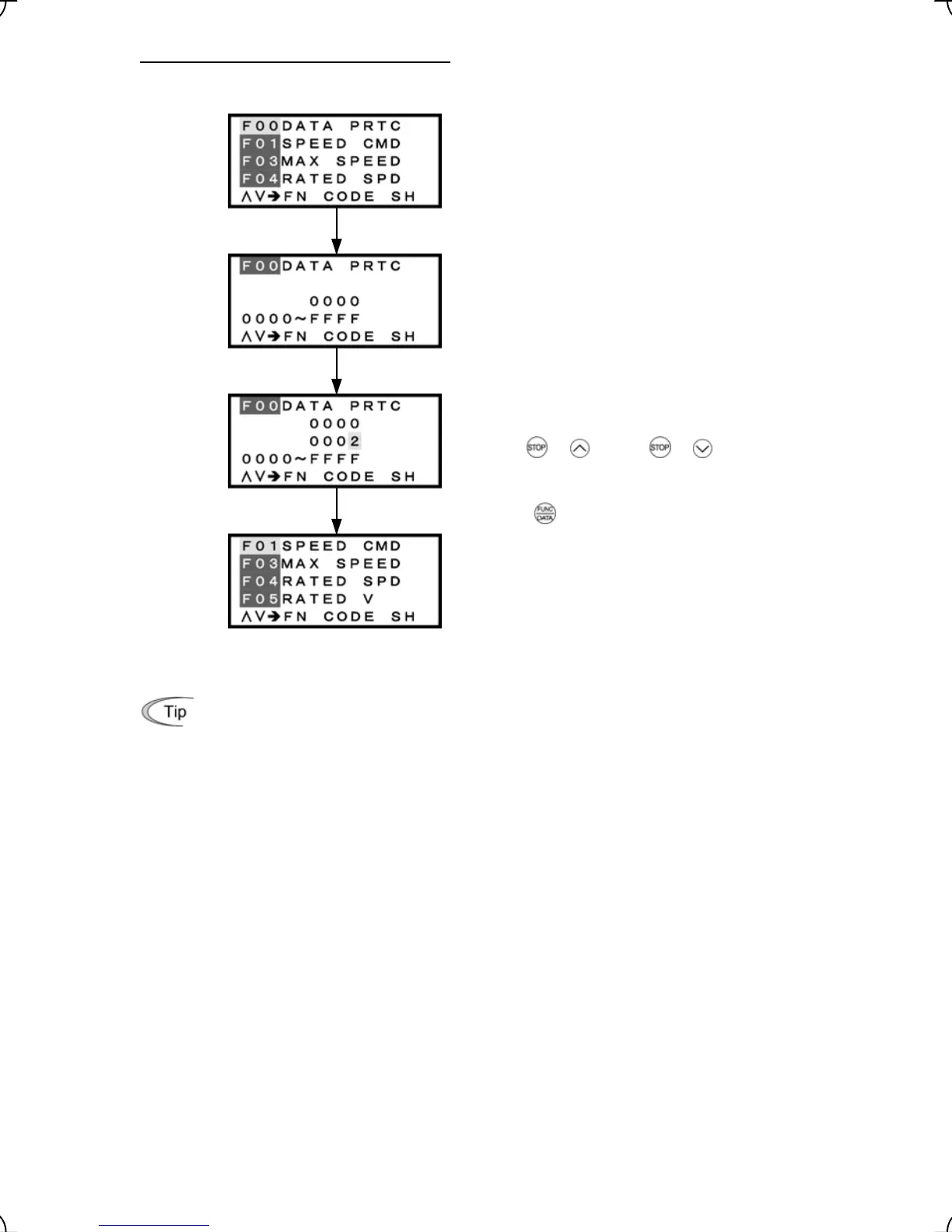 To change the data of F00 (Data Protection), simultaneous
