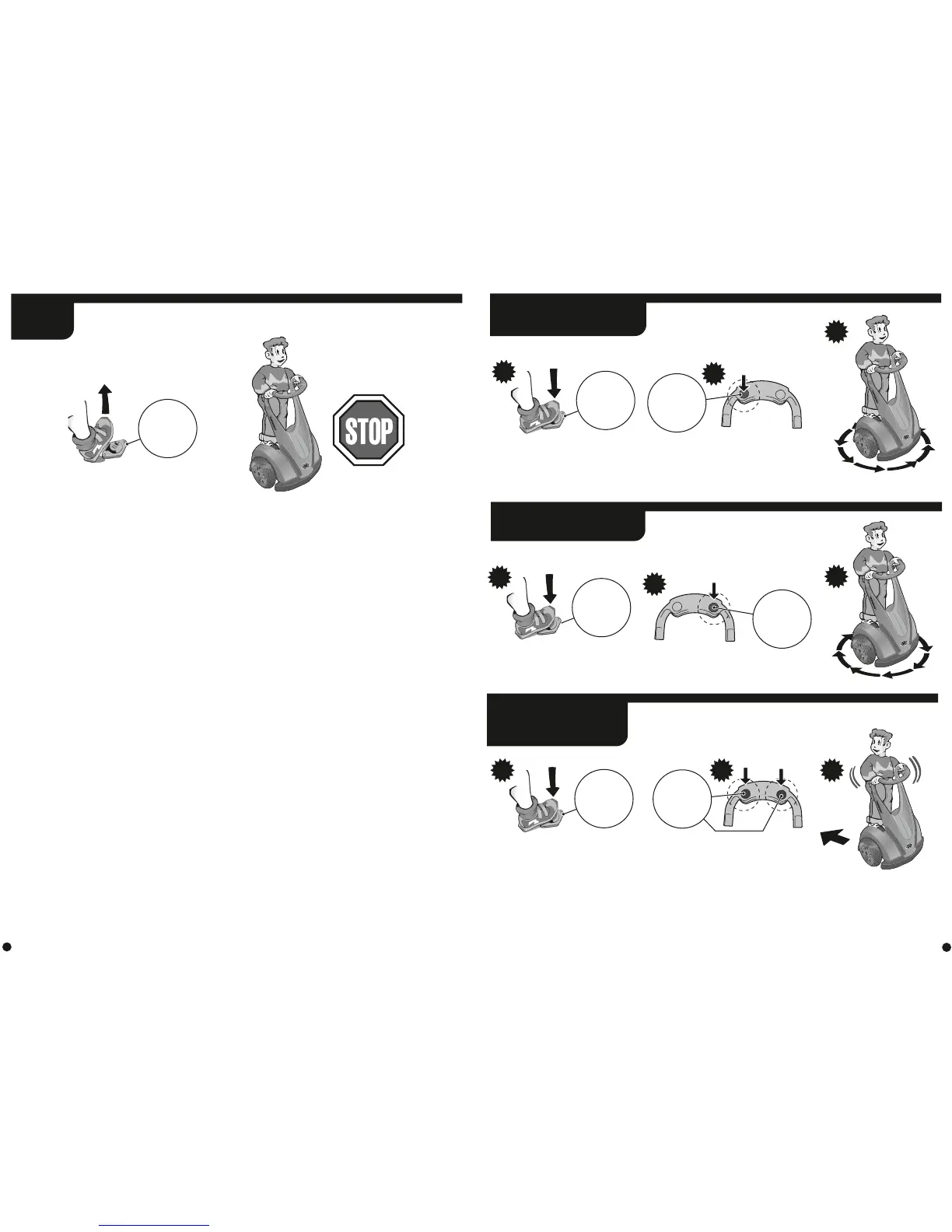 Cuando el niño frene mientras está avanzando hacia atrás, debe inclinar el cuerpo ligeramente hacia el frente del juguete, y preparar un pie para