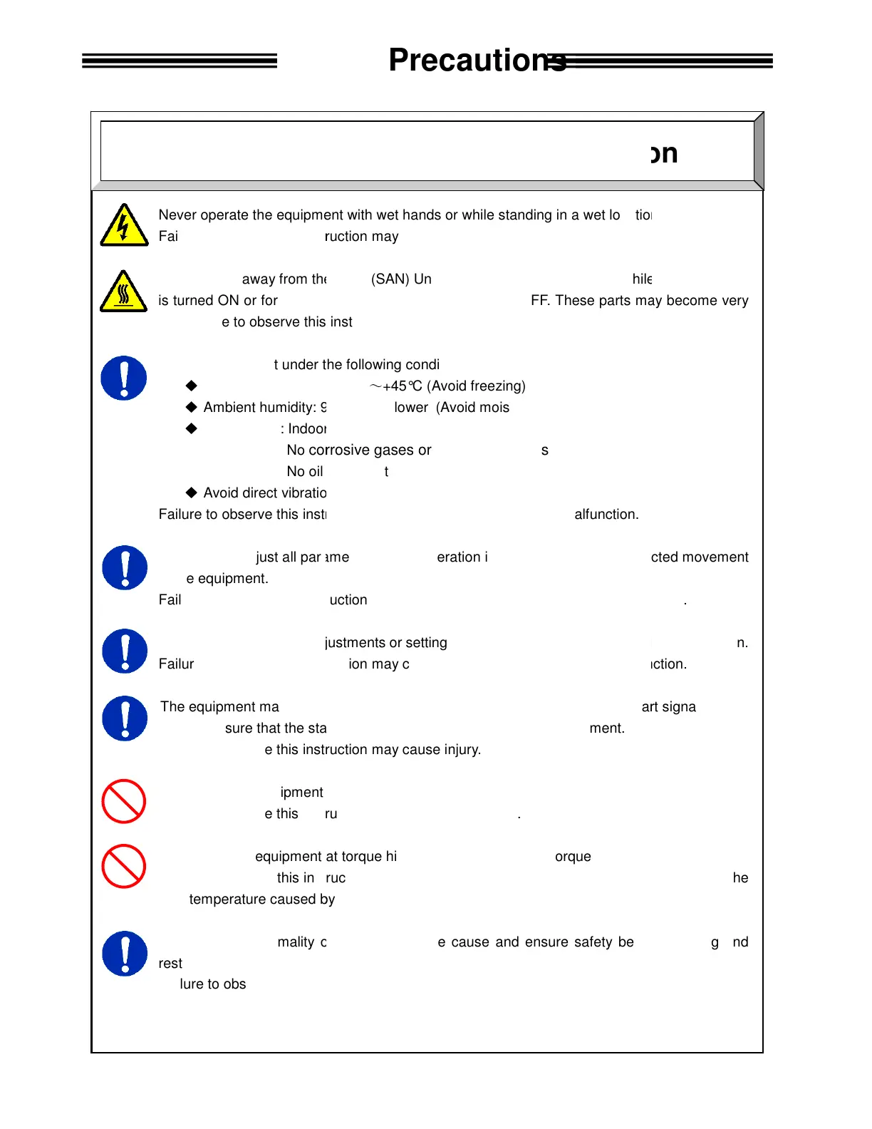 Use the equipment under the following conditions.